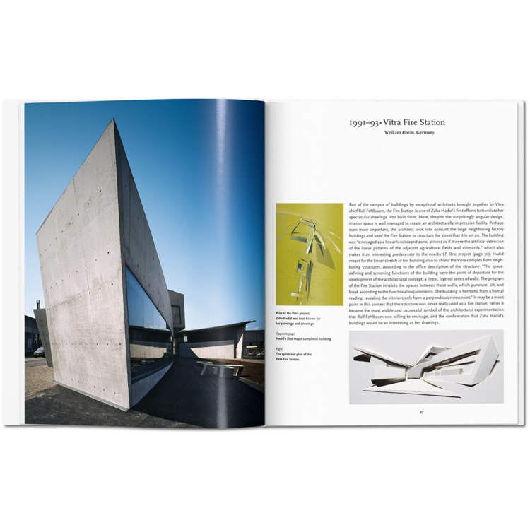 초기에 날카롭게 각진 건물에서 바닥, 천장, 벽, 가구를 전체적인 디자인의 일부로 만든 좀 더 유동적인 건축에 이르기까지, 이 필수적인 소개는 Hadid의 선구적인 실천의 주요 예를 제시한다. 그녀는 건축가 못지않게 예술가였고, 낡은 규칙을 깨고 그녀만의 21세기 우주를 창조했다.