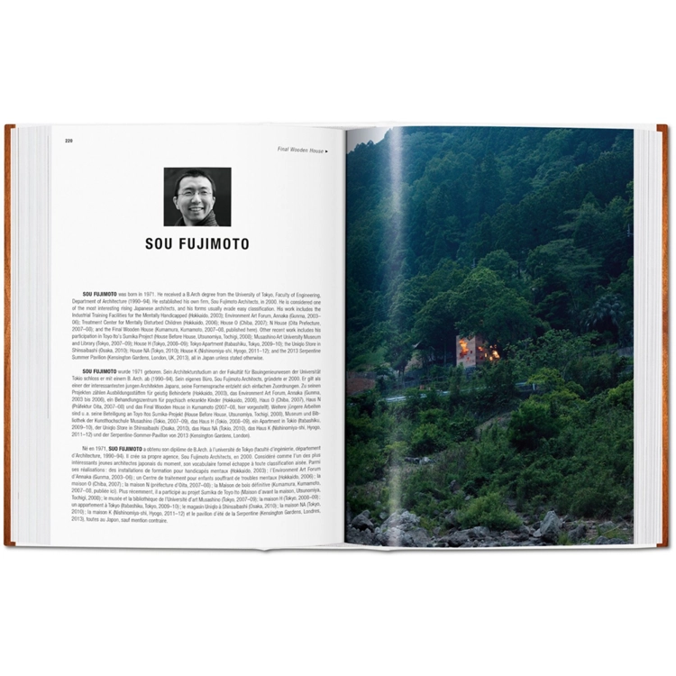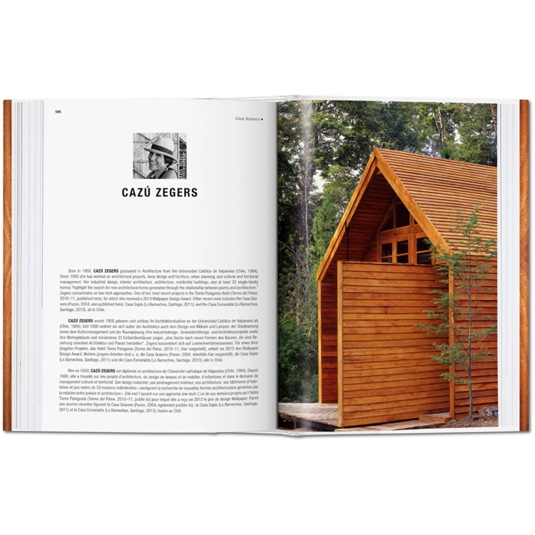 모든 TASCHEN 건축 제목에 충실하게, 이 책은 안도 다다오, 렌조 피아노와 같은 유명한 인물들뿐만 아니라 많은 떠오르는 국제적인 인재들에게 경의를 표한다. 각 건축가의 비전과 혁신을 축하하는 것은 물론, 목재로 작품을 알린 기술, 트렌드, 원리 등을 조사한다. 그것은 참신한 새로운 형태를 가능하게 한 컴퓨터 유도 제분, 나무가 우리의 환경적 우려와 일치하도록 하는 책임감 있는 수확, 그리고 무엇보다도 목재의 지속적인 우리의 감각과 정신에 대한 호소력, 바쁜 현대 생활을 아르카디언의 단순함으로 위로하는 것을 검토한다.