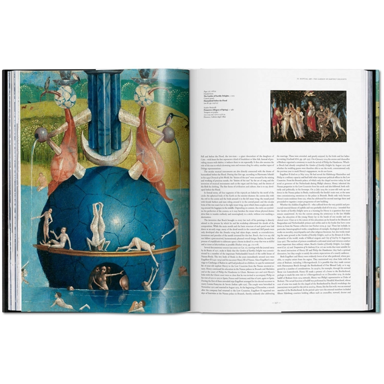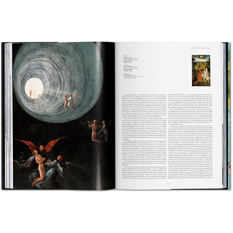 미술사에서 가장 신비로운 거장 중 한 명인 히에로니무스 보쉬에 대한 철저한 탐험이다. 최근 복원된 작품들의 새로운 사진을 TASCHEN에 의뢰한 XXL판을 바탕으로 한 이 모노그래프는 그의 작품을 접근 가능한 텍스트, <마지막 심판>의 접힌 부분인 <세상의 기쁨의 정원>의 특별 장, 그리고 그 자체가 그림이 될 정도로 흠잡을 데 없이 재현된 세부 사항들을 통해 풀어낸다.