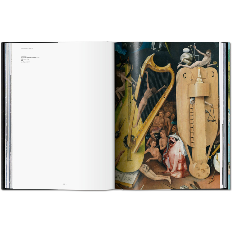 TASCHEN이 디테일과 최근 복원된 작품에 대한 새롭고 독점적인 사진 촬영을 의뢰한 베스트셀러 XXL판을 바탕으로 한 이 대규모 모노그래프는 보쉬의 전 작품을 보여준다. 미술사학자이자 보쉬의 전문가인 스테판 피셔의 글은 인간과 짐승의 잡종 생물에서부터 보쉬의 속담과 관용구를 그림으로 사용한 것에 이르기까지 각 장면을 채우는 많은 매력적인 요소들을 해부한다. 그의 작품에서 이해하기 어려운 실타래를 하나의 철저한 개요로 묶음으로써, 이 책은 보쉬와 그의 그림에 대해 엄청난 영향력을 입증한 것이 무엇이었는지를 드러낸다.