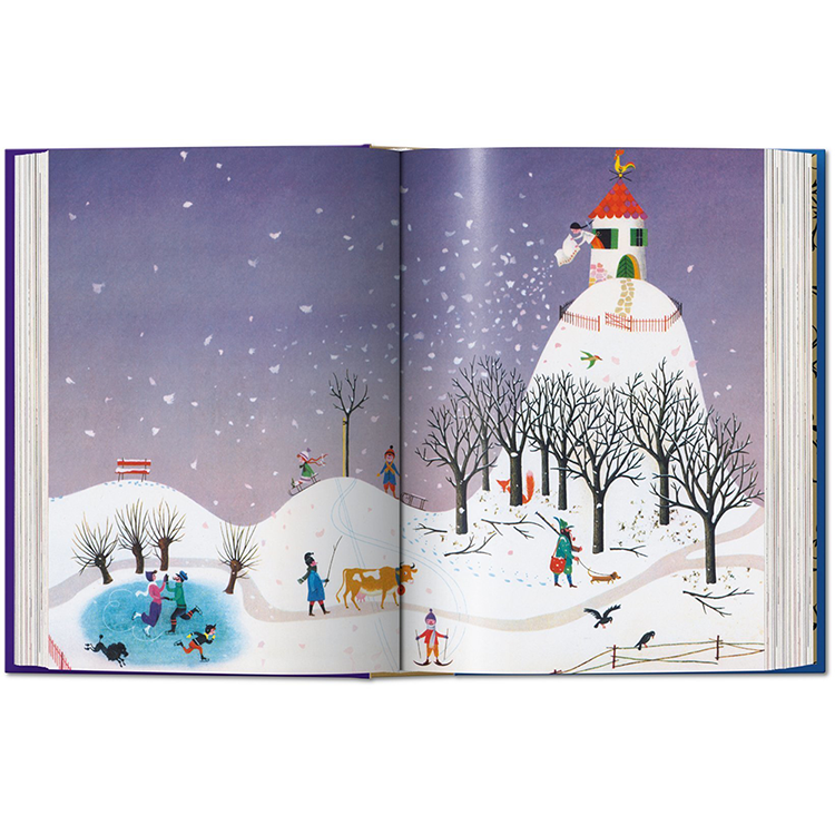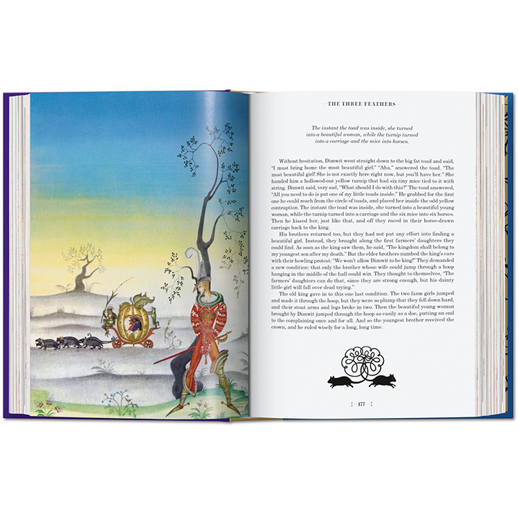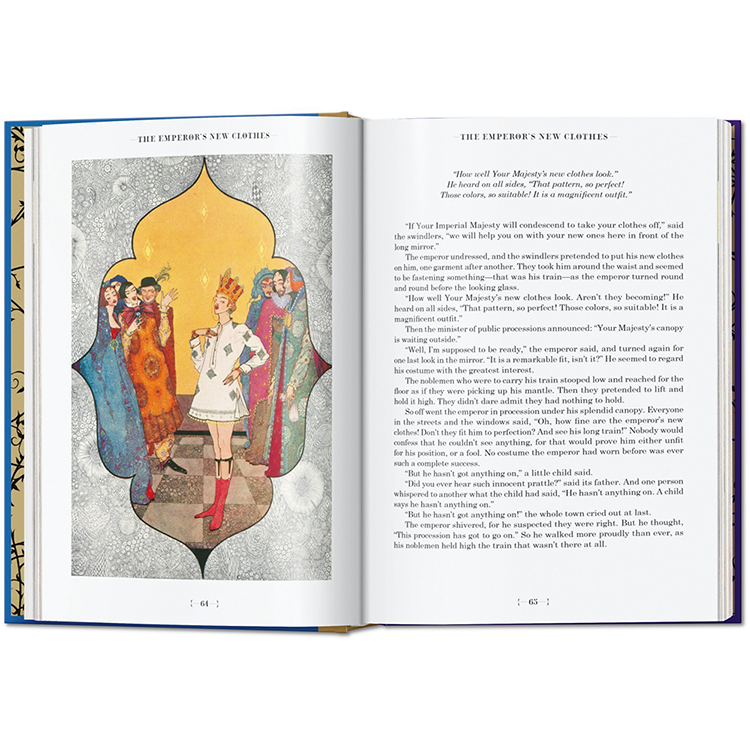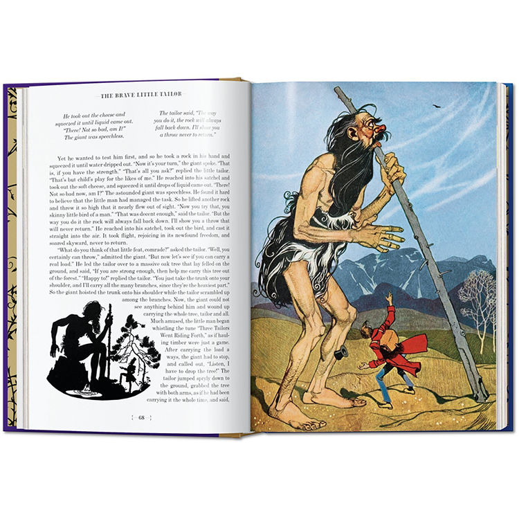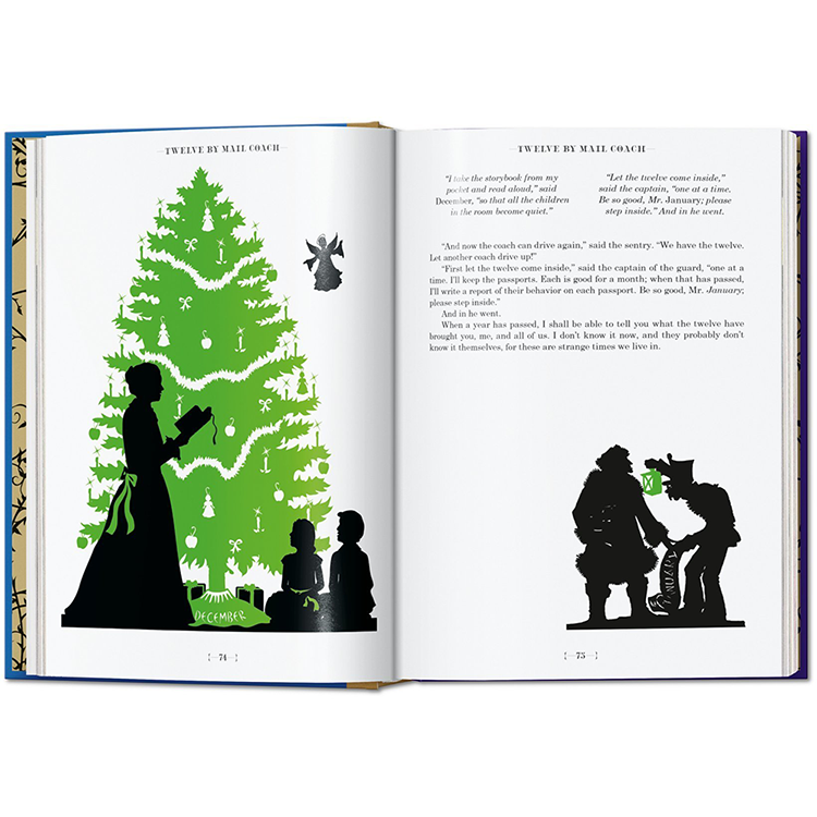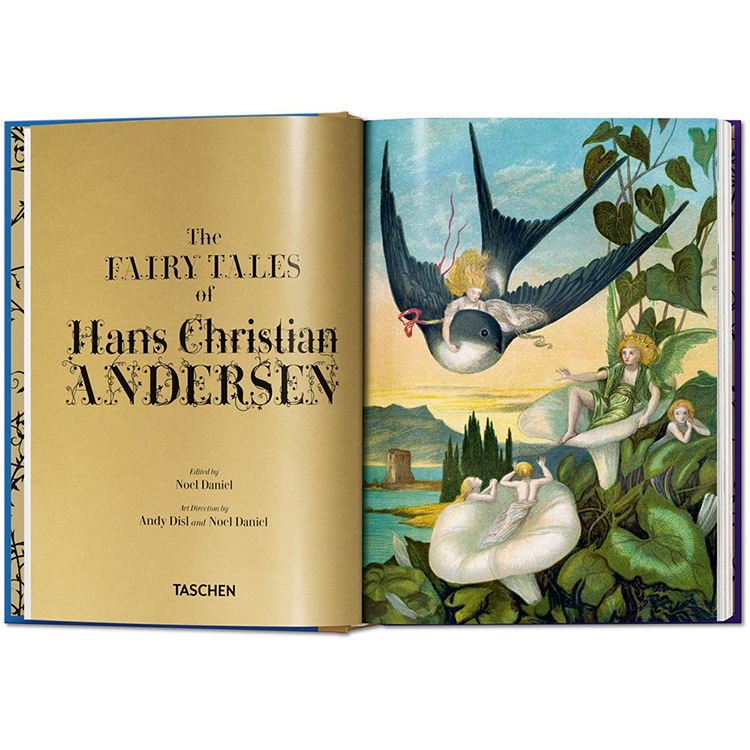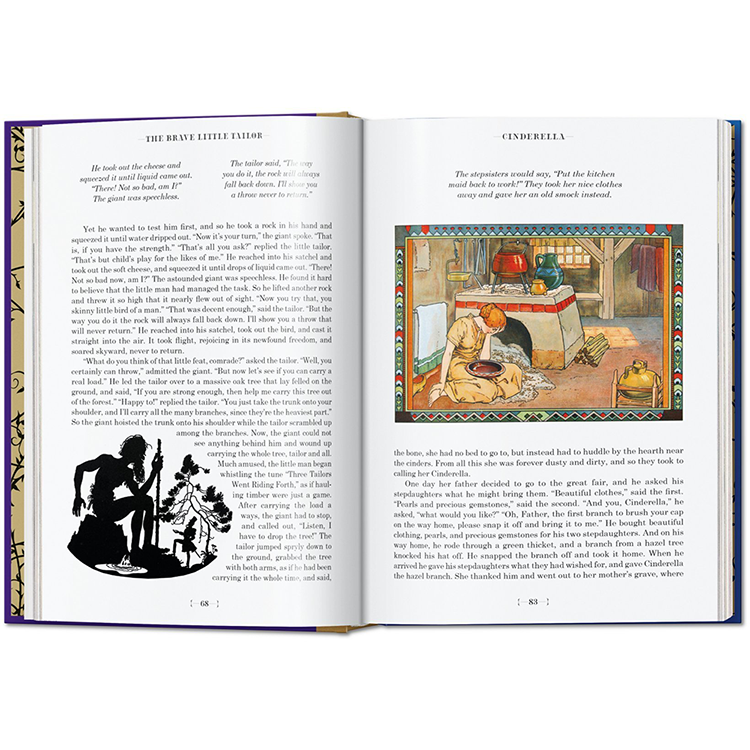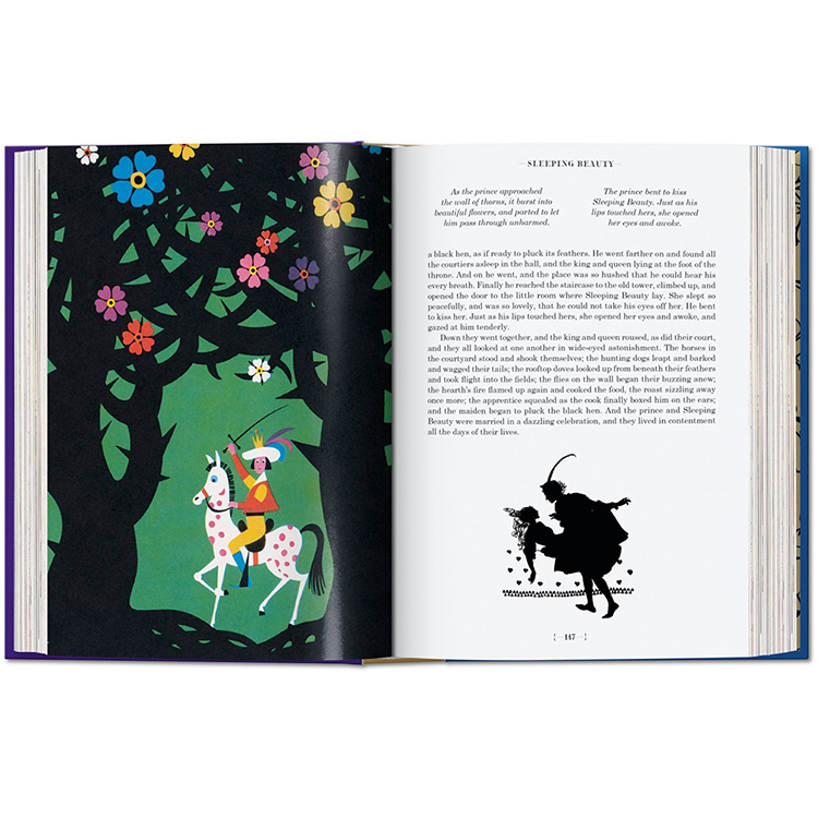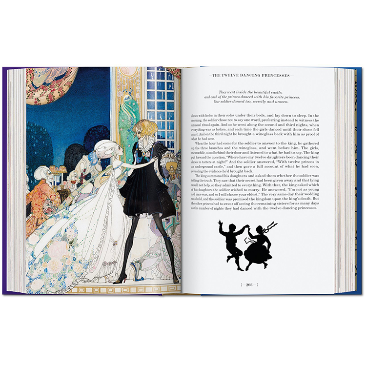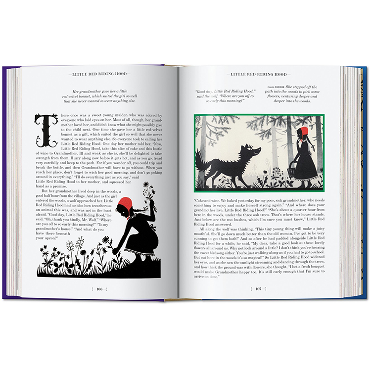 그림 형제의 이야기와 안데르센의 이야기는 수 세대에 걸쳐 예술가들에게 영감을 주었고, 이 책의 각 동화는 유명한 일러스트레이터에 의해 다채롭게 해석됩니다: 케이 닐슨(1920년대에 끝난 일러스트레이션의 황금 시대의 대표적인 대표자), 예술과 공예의 거장 월터 크레인, 아서 락햄, 그리고 스위스의 상업 예술.Herbert Leupin 이다. 역사 출판물의 실루엣과 이 판을 위해 특별히 제작된 새로운 비네트가 함께 있는데, 이 비네트는 복잡한 그림자 놀이로 페이지를 넘나들며 춤을 춘다. 그림 형제의 동화와 현대 동화의 심장으로서 안데르센에 대한 소개 에세이는 각 동화와 예술가들의 전기의 짧은 요약처럼 이러한 환상의 비행을 보완한다.