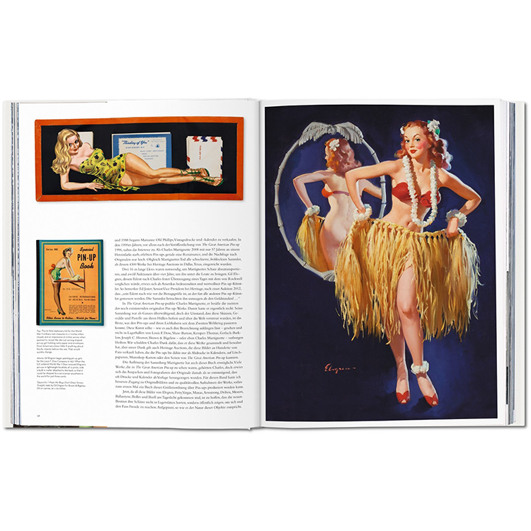 어마어마한 크기의 Art of Pin-up에 기반을 둔 이 접근 가능한 에디션은 게임 내 상위 10명의 심층 쇼케이스와 함께 거의 100명의 아티스트를 모읍니다. 각 장은 해당 예술가의 달력 또는 잡지 표지 원본의 복제로 시작된다. 이어지는 그림, 파스텔, 그리고 준비 스케치의 복제품질은 보는 이로 하여금 붓글씨를 추적하게 하고, 절묘한 시대 달력, 빈티지 프린트, 원본 모델 사진은 예술가의 창작 과정을 기록하게 한다. 이 짧은 시간의 대부분은 세계에서 가장 큰 빈티지 핀업 달력 보관소가 있는 역사적인 브라운 & 비글로 컴퍼니에서 촬영되었다.
