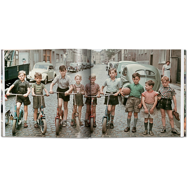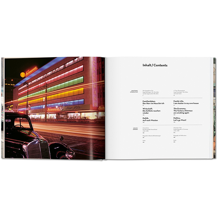 이 사진들은 기술적 모더니즘과 문화적 회복의 양극들, 부유함과 빈곤함, 독일의 게무트릭케이트와 냉전의 끊임없는 위협 사이에 끼어있는 나라를 묘사하고 있다. 그들은 "경제적 기적"의 승자와 패자, 모든 사회 계층의 사람들, 가정, 직장, 매우 제한된 자유 시간과 소비자로서의 모습을 보여줍니다. 그러나 그들은 또한 돌이켜보면 지난 세기 중반의 영화처럼 보이는 나라를 보여준다.