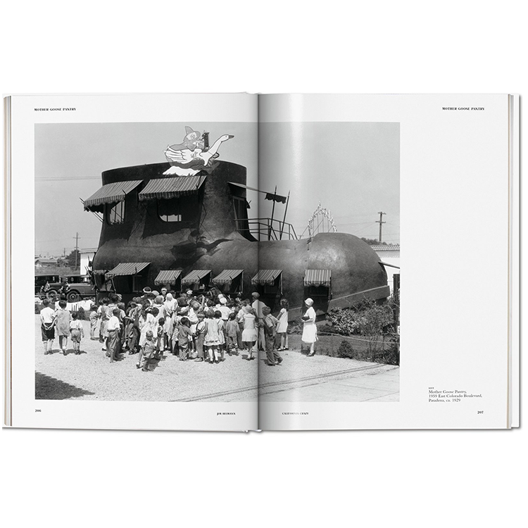 이 건축 장르의 가장 좋은 예들로 가득 찬 캘리포니아 크레이지에는 초기의 건축 운동을 촉진한 영향을 탐구하는 에세이와 이러한 건물들이 풍부하게 번성할 수 있도록 한 로스앤젤레스와 할리우드 길가에서 발견되는 관습적이지 않은 풍경과 태도를 식별하는 에세이가 포함되어 있다.