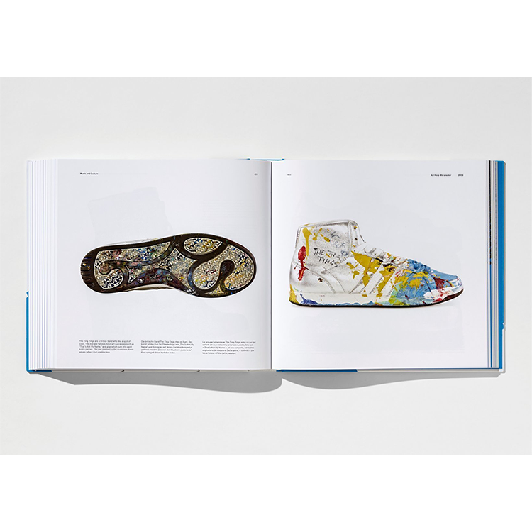 최고의 복제 기술을 사용하여 촬영된 이 이미지들은 얼룩, 눈물, 수리 테이프, 잔디 얼룩, 빛바랜 사인만큼 섬세한 디테일을 보여준다. 모든 것이 여기에 있으며, 조작되지 않고 매우 높은 해상도로 캡처되어 있으며, 착용자 개개인의 개인적인 이야기를 밝힌다. 우리는 서독 축구 대표팀이 1954년 월드컵에서 "기적"으로 우승했을 때 신었던 신발과 여성의 공식 경기가 허용되기 전인 1967년 보스턴 마라톤을 완주할 때 신었던 신발을 만난다. 마돈나부터 리오넬 메시까지 스타를 위한 맞춤형 모델; Kanye West, Pharrell Williams, Raf Simons, Stella McCartney, Parley for the Oceans 또는 Yohji Yamamoto와 같은 협업; 뿐만 아니라 해변과 해안 지역 사회에서 차단된 플라스틱 폐기물의 선구적인 사용과 같은 브랜드의 선구적인 기술과 재료.