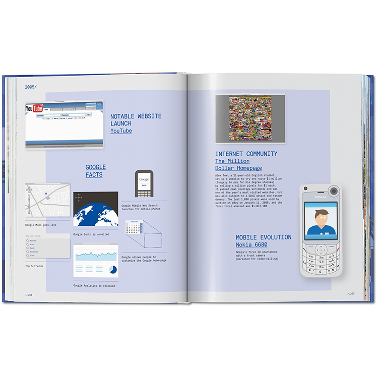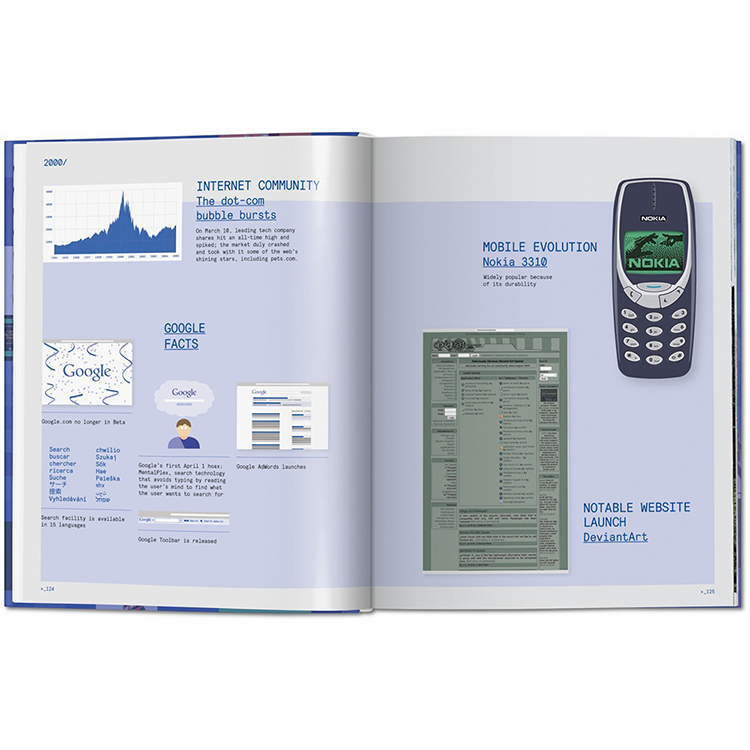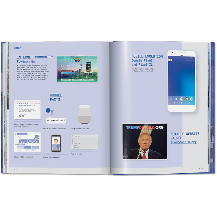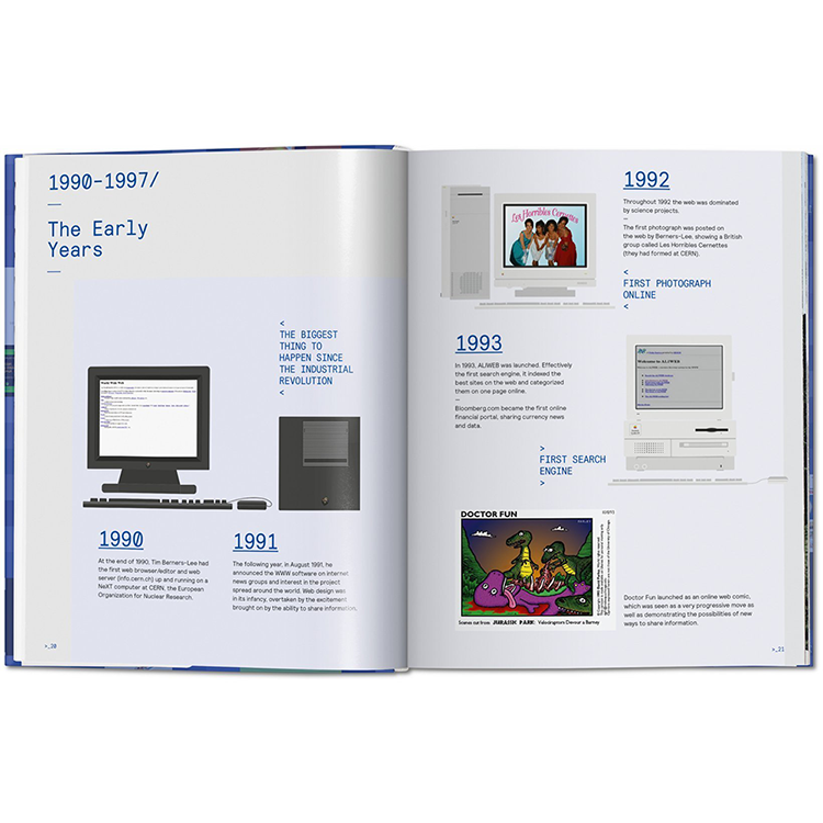 이 포괄적인 시각적 이력은 1998년 이후 매년 최고의 웹 사이트와 당시 사용된 하드웨어의 예를 상세히 설명하는 21개의 장을 수집하고, 사용자 경험, 사용성 및 기술적 이정표가 오늘날 우리가 사용하는 인터넷의 개발에 어떻게 영향을 미쳤는지를 탐구한다. 연도별 팩트시트와 스마트 구글 통찰력은 세계 뉴스 헤드라인, 최고 수익을 올린 영화, 새로운 소프트웨어 및 하드웨어, 최고의 웹 사이트 트래픽 등과 같은 범주에 걸친 주요 발전을 통해 독자의 방향을 정한다.