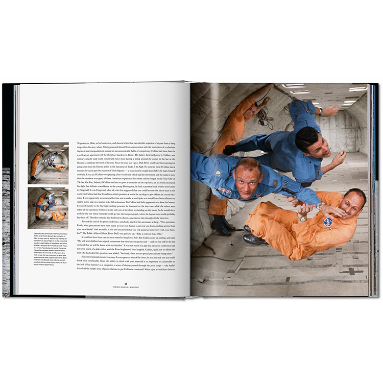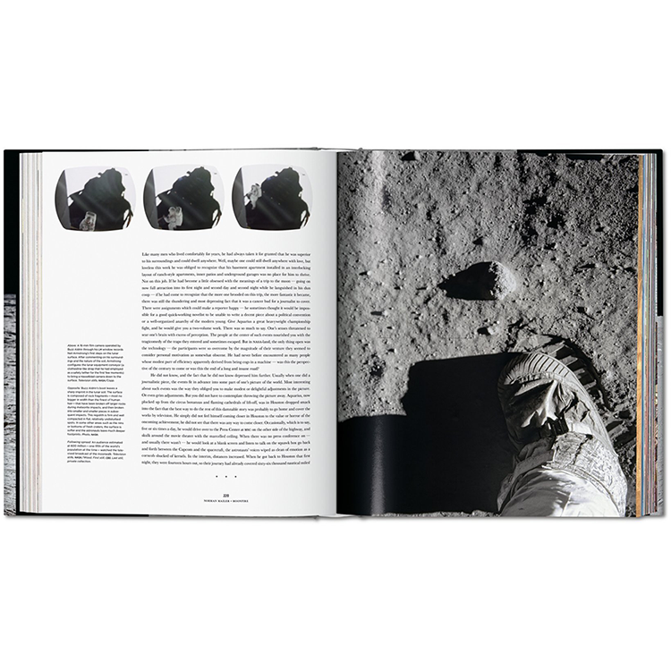 이 책에는 NASA 보관소, 잡지 보관소, 개인 소장품에서 가져온 수백 장의 사진과 지도가 있다. 이 이미지는 기관의 발전과 임무, 사령부 내부와 달 표면에서의 삶, 착륙에 대한 세계의 환호하는 반응을 기록한다. 이 50주년 기념판에는 임무 기록, 오늘의 간행물, 비행 후 우주비행사 인터뷰를 인용하여 이미지 이면의 역사와 과학을 설명하는 주요 Apollo 11 전문가의 캡션이 포함되어 있다; Colum McCann의 인상적인 서문은 "우주의 과학... 역사의 무게... 신화의 폭"을 산문으로 변형하는 데 있어 Mailer의 비할 데 없는 기술을 기념한다.