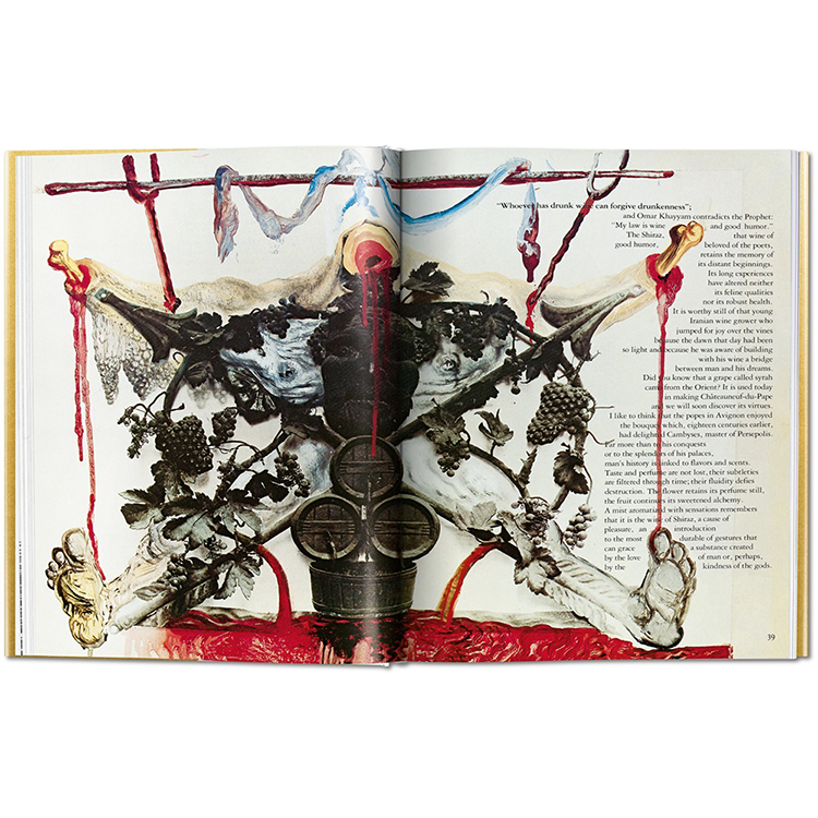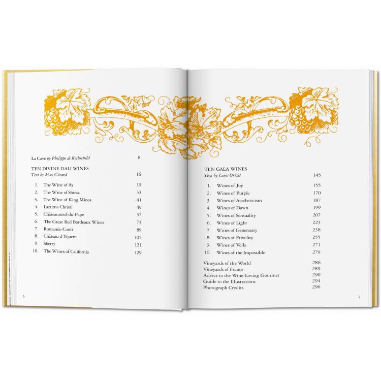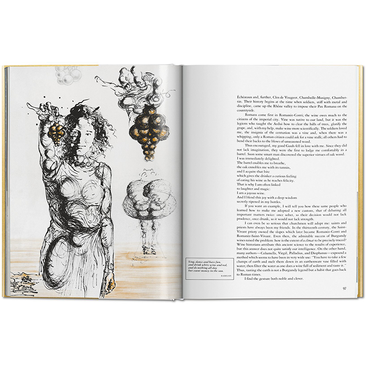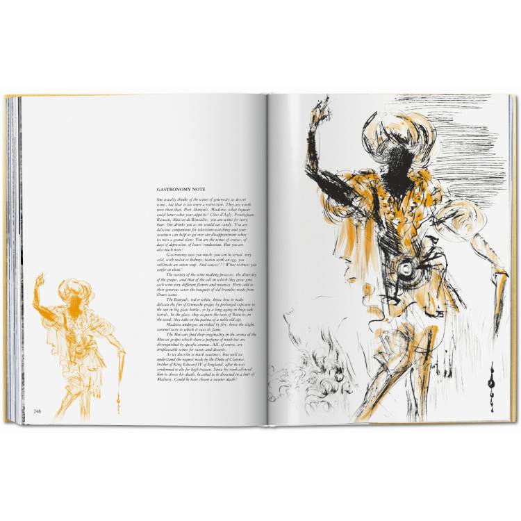베스트셀러 『Les dîners de Gala』의 완벽한 짝이자, 타셴이 선보이는 또 하나의 초현실적·관능적 명작 『The Wines of Gala』는 달리만의 시선으로 풀어낸 포도주의 세계를 담고 있다. 진정한 수집가들이 탐내는 이 책은 “우리 내면 깊숙한 곳에서 일어나는 감각에 따라 와인을 분류한다”는 달리 특유의 방식으로 전 세계 와인을 색다르게 정리한다.