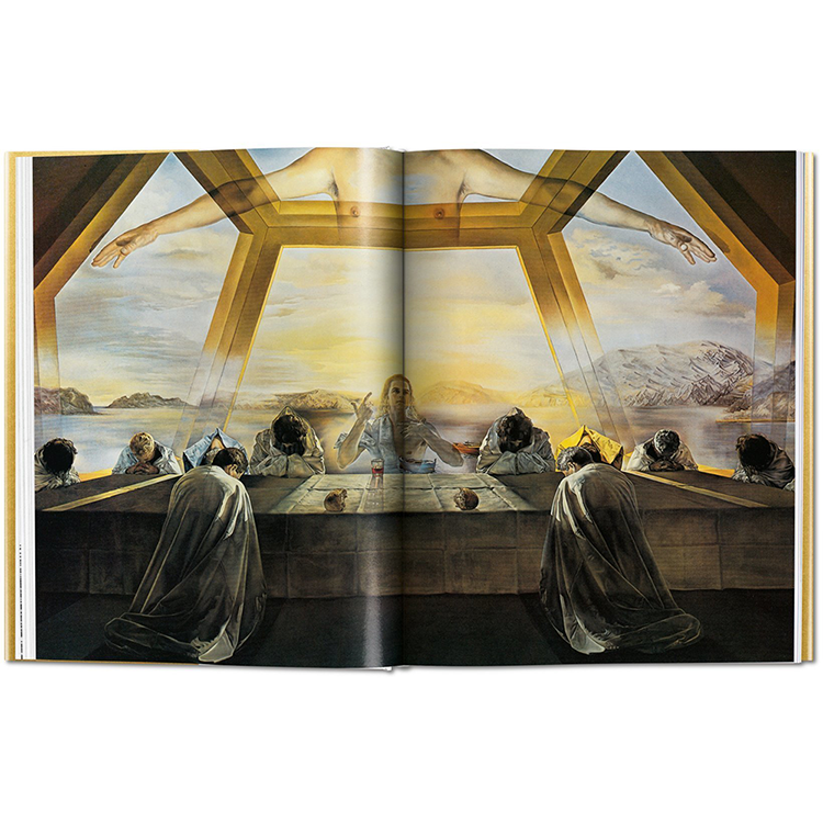 책에는 140점 이상의 이미지가 수록되어 있으며, 그중 다수는 고전 누드화를 재구성한 것으로, 달리 특유의 도발적이고 초현실주의적인 손길이 더해졌다. 특히 달리가 오랫동안 집착해온 장프랑수아 밀레의 <만종(The Angelus)> 도 인용되었고, 후기 ‘핵심비의주의(Nuclear Mystic)’ 시기의 대표작으로 평가받는 <최후의 만찬(The Sacrament of the Last Supper, 1955)> 도 포함되어 있다. 이 작품은 카탈루냐 해안 풍경을 배경으로, 반투명한 12면체 공간 속에서 성서 속 장면을 그려냈다. 이 시기의 달리는 독실한 가톨릭 신자이자, 과학·착시·원자시대에 매료된 사상가였다.