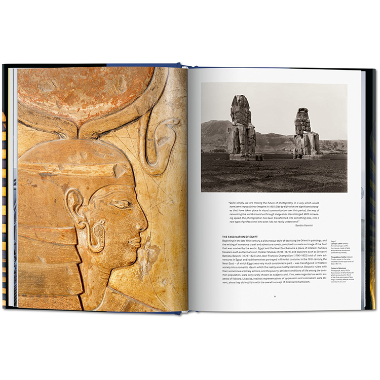 인정받는 사진작가 산드로 바니니가 90년대 후반에 이집트에서 그의 작업을 시작했을 때, 기술혁명이 막 일어나려 하고 있었다. 새로운 기술들은 그가 벽화, 무덤, 그리고 유물을 전례 없는 세밀하게 문서화할 수 있게 해주었다. 시간이 많이 걸리고 힘든 멀티샷 기법을 사용하여, 바니니는 생생한 강렬함으로 원래 색조의 색상을 드러내는 완전한 사진 복제품을 제작했다. 이러한 놀라운 이미지를 통해 우리는 정교하고 교묘하게 숨겨진 세부 사항과 함께 사물의 본질적인 특징을 발견한다.
