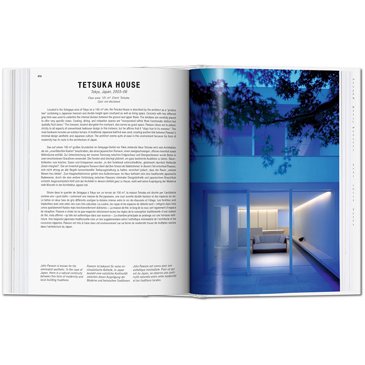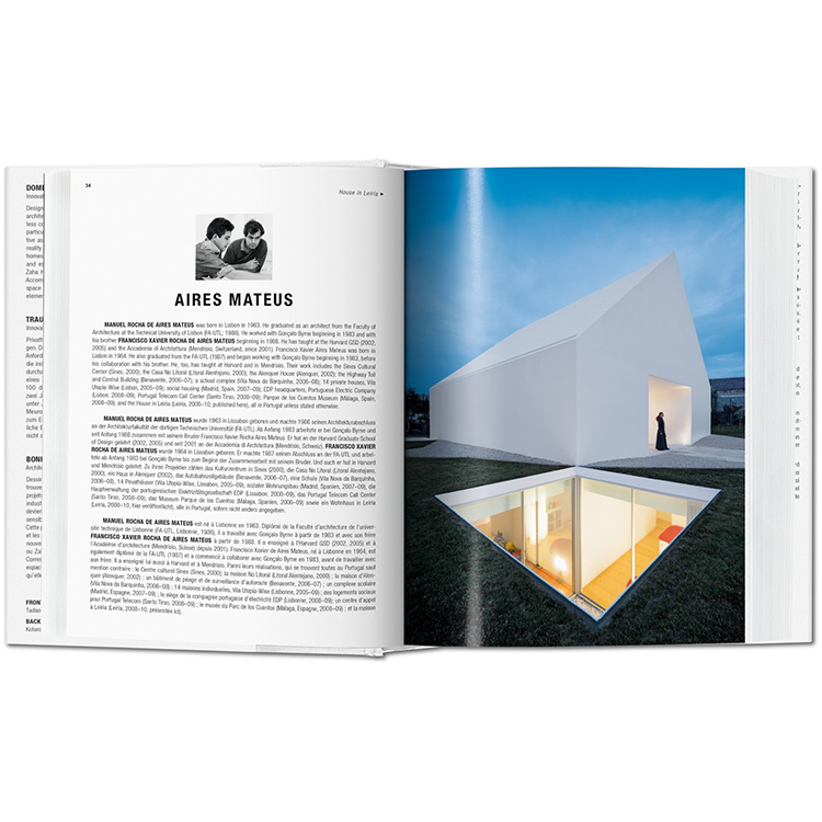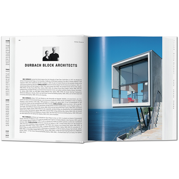 이 출판물은 존 포슨, 리처드 마이어, 시게루 반, 안도 타다오, 자하 하디드, 헤르조그 & 드 메롱, 다니엘 리베스킨드, 알바로 시자, 피터 즈토럼을 포함하여 지난 20년 동안 디자인된 세계에서 가장 흥미롭고 선구적인 주택 100곳을 정리했다. 개인적인 경험과 관계를 위한 공간을 제공할 뿐만 아니라, 먹고, 자고, 숨는 일상의 일상을 수용하는, 이것은 가장 기본적이고 가장 친밀한 건축이다.