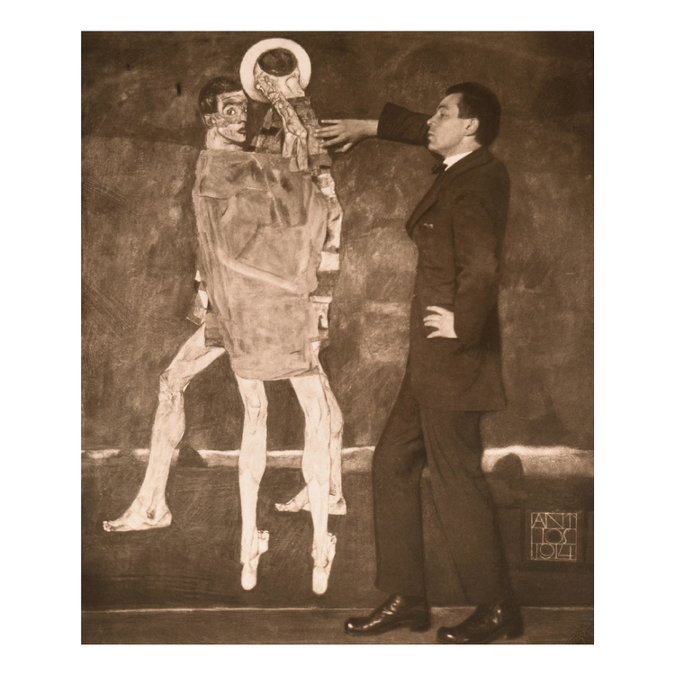 그의 초췌하고 지나치게 늘어진 모습, 성에 대한 과감한 묘사, 그리고 화려함과 광기 사이에 있는 수척해진 얼굴 표정으로 자신을 무대에 올린 자화상은 클림트의 사랑, 성애, 그리움 헌신 찬송가의 장식적인 특징이 전혀 없었다. 대신 실레의 작품은 빈 사회를 화나게 하고 돌이킬 수 없는 변화를 가져올 잔인한 정직성에 대해 이야기했다.