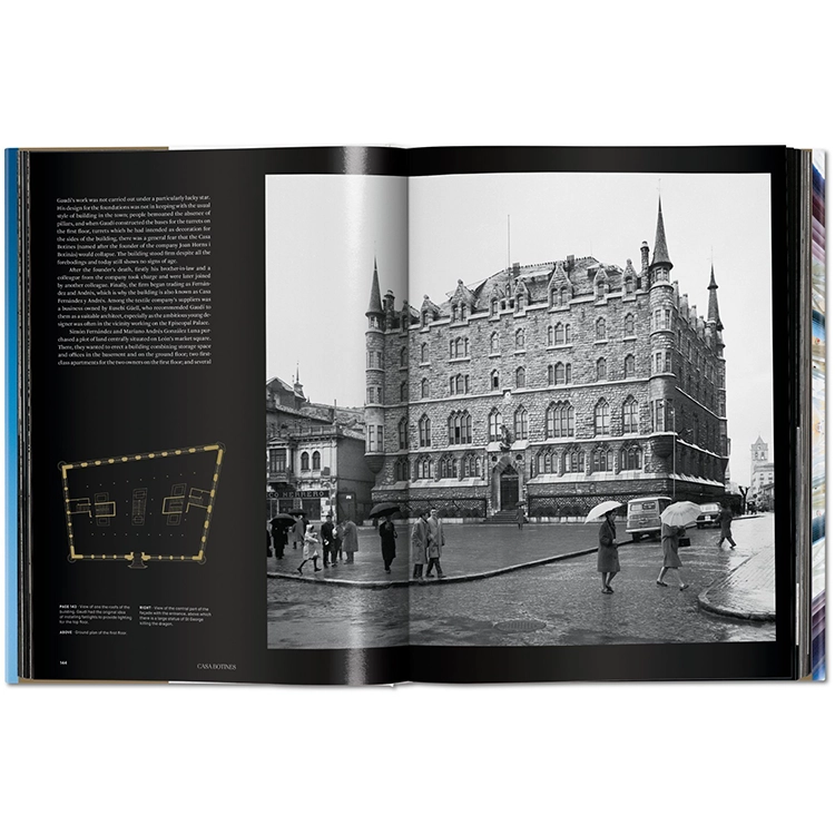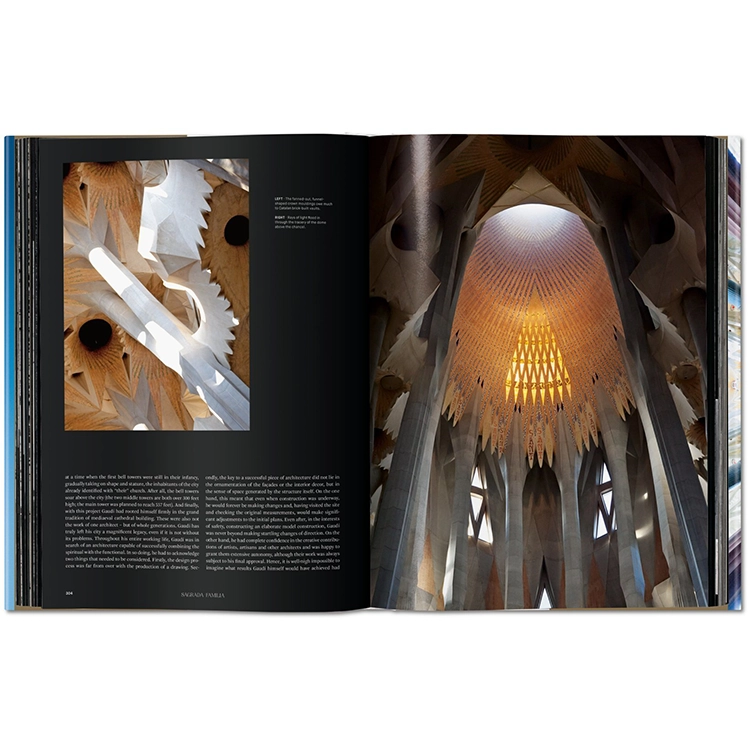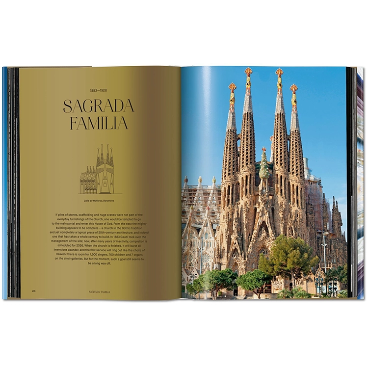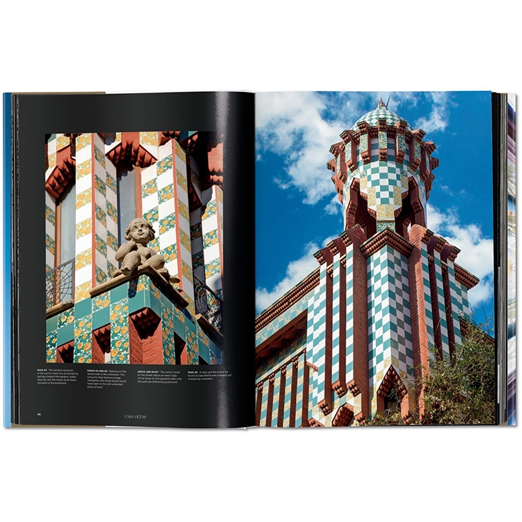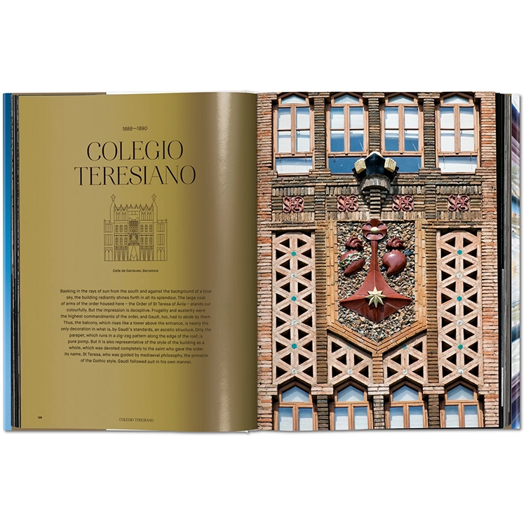 이 책은 가우디가 직접 그린 새로운 사진, 계획, 그림, 역사적 사진, 그리고 건물에서 가구, 장식, 미완성 프로젝트에 이르기까지 그의 모든 작품을 상세히 기술한 부록을 통해 가우디의 우주를 그 어느 때보다도 잘 보여준다. 바르셀로나의 개인적인 여행처럼, 우리는 "건축의 단테"가 어떻게 세밀하고 매혹적인 디테일을 만들어내고 환상적인 비전을 도시 거리에서 현실로 변화시키는, 진정한 의미의 건축가였는지를 발견한다.
