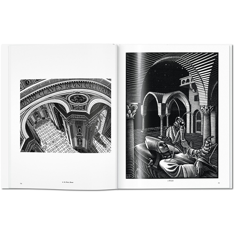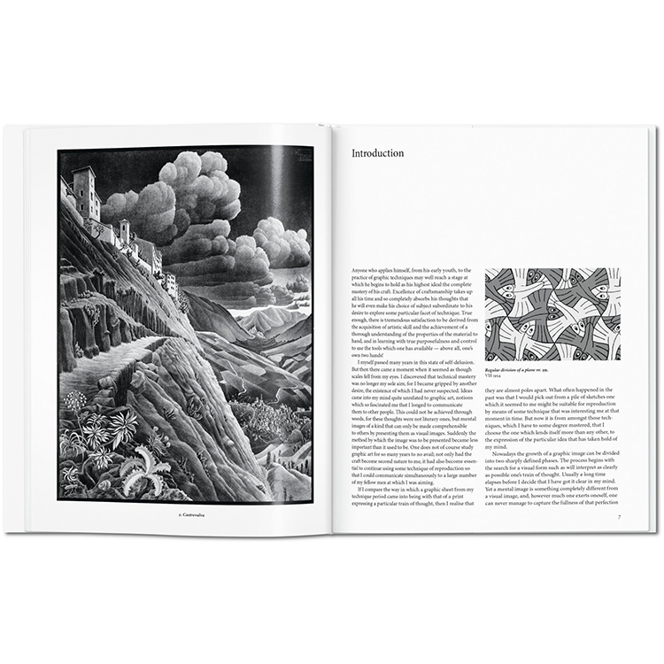 TASCHEN Basic Art 2.0의 이 입문서는 이미지와 지각에 대한 그의 끊임없는 탐구의 핵심 작업으로 Escher의 빛나는 마음을 활용한다. 도중에, 여러분은 새들로 변신하는 물고기들, 그 페이지에서 기어 나오는 도마뱀들, 훌륭한 성찰들, 무한한 미로들, 그리고 20세기 예술의 가장 마음을 굽히는 이미지들을 발견할 것이다.