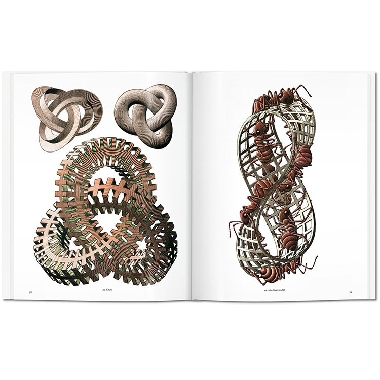 불가능한 계단에서부터 테셀링된 새에 이르기까지, 네덜란드의 예술가 M.C. 에셔 (1898–1972)는 패턴, 퍼즐, 수학의 독특한 그래픽 언어를 만들었습니다. 조밀하고, 복잡하며, 복잡한 원리에 의해 구조화된 그의 작품은 장식적이면서도 장난스러우며, 시각적 환상과 감각적 인식의 한계를 끊임없이 가지고 장난을 친다. 수학자들과 과학자들에게, 에셔는 주모자이다. 히피들에게 그는 사이키델릭 예술의 선구자였다.