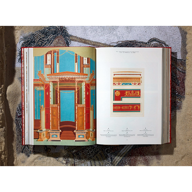 1854년에 처음 발행되었으며 매장된 베수비안 도시의 400개 이상의 색판을 특징으로 하는 폼페이, 파우스토, 펠리체 니콜리니의 특별한 폼페이 출판물의 꼼꼼한 복제다. 오래 지속되는 고고학적 걸작인 이 책은 폼페이의 지도와 평면도뿐만 아니라 고대 개인 주거지를 구성했던 놀라운 내부 장식과 친밀한 일상적 물건들도 보여준다.