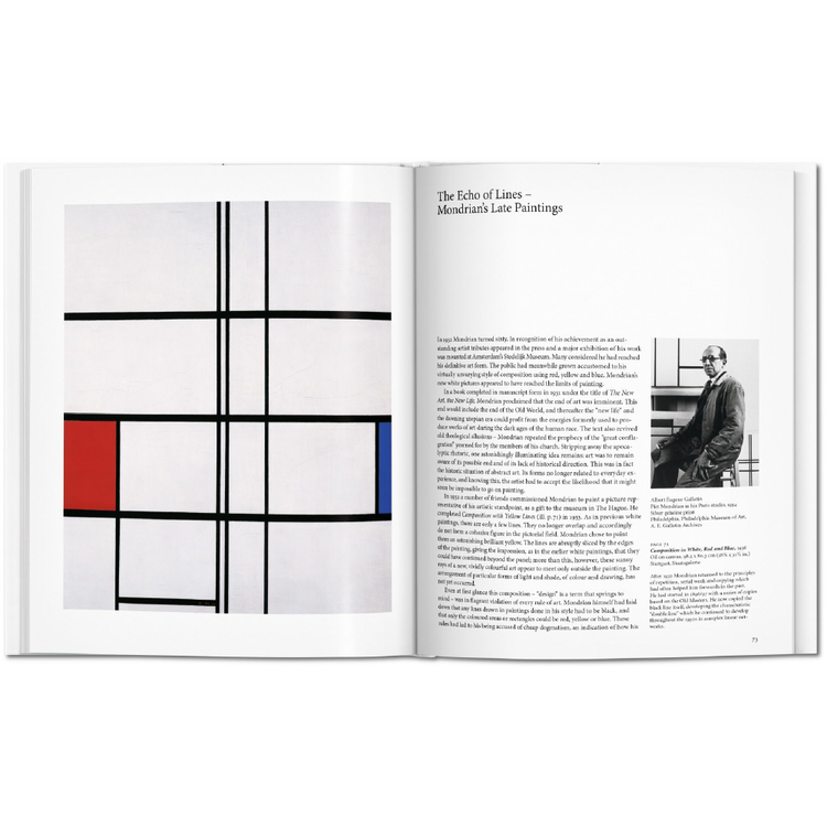 주요 작품들과 간결한 텍스트들로, 이 입문서는 화이트 스트라이프 앨범 커버에서부터 이브 생 로랑 드레스에 이르기까지 패션, 예술, 건축, 디자인에 지속적인 영감을 주는 몽드리안의 독특하고 선구적인 작품들을 제시한다.