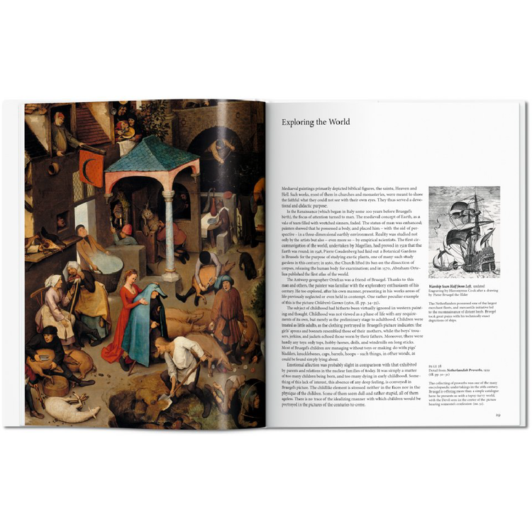옥수수 수확부터 사울의 개종까지, 진기한 결혼 행렬부터 그리스도의 길, 칼바리에 이르기까지 이 책은 브루겔의 풍부한 주제들을 모아 성경과 세속의 탁본에 대한 그의 강력한 구성을 소개한다.