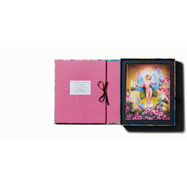 Edition of 500Hardcover, 2 vols. in a box with fold-outs, 27.8 x 35.5 cm (10.9 x 14 in.), 10.15 kg (22.33 lb), 554 pages total; with three prints on Canson Baryt paper, each numbered and signed by David LaChapelle