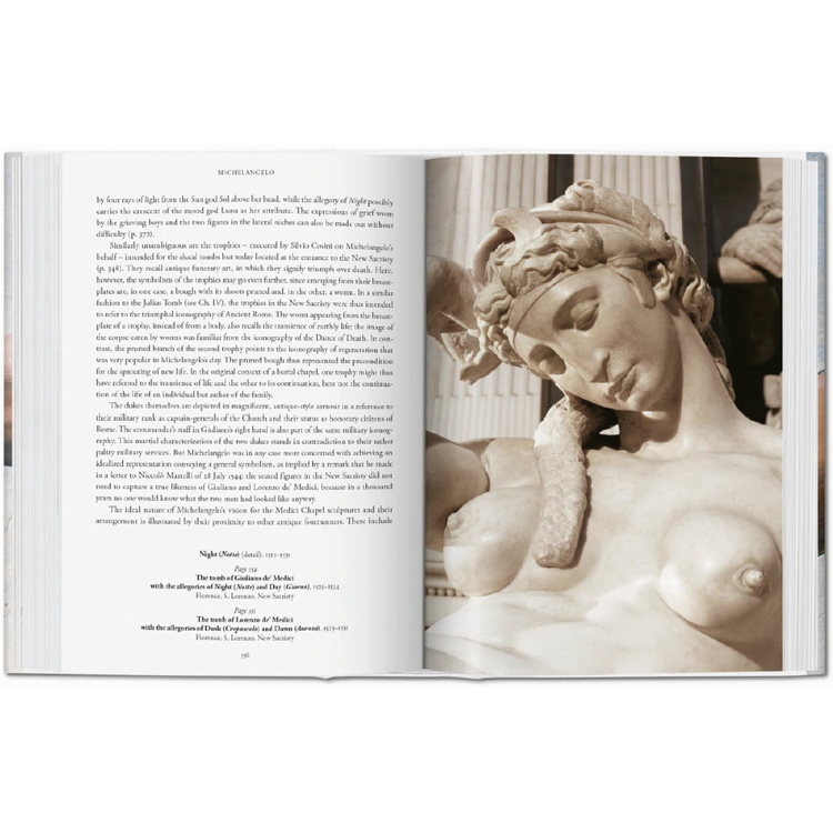 이 새로운 TASCHEN 판은 미켈란젤로가 르네상스의 문화적 엘리트가 된 것을 추적합니다. 시스티나 성당의 프레스코화를 둘러본 화가의 여행에 대한 면밀한 분석을 포함하여, 10개의 풍부한 삽화가 있는 장들이 화가의 그림, 조각, 그리고 건축을 다룹니다.전면적인 복제와 확대된 세부 사항들은 독자들로 하여금 그 예술가의 레퍼토리에서 가장 훌륭한 세부 사항들을 감상할 수 있게 해주는 반면, 이 책의 전기 에세이는 미켈란젤로의 고독한 성격, 돈과 수수료에 대한 갈증, 막대한 재산, 그리고 부동산 투자자로서의 그의 기술과 같은 더 개인적인 특성과 상황을 고려하게 합니다.