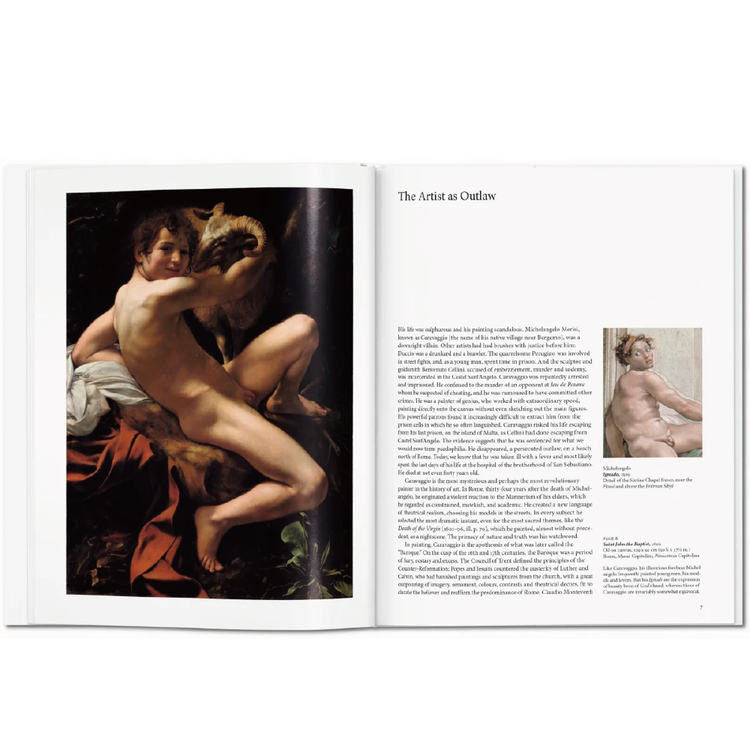 이 책은 카라바조의 가장 유명하고 혁명적인 50개 이상의 작품을 모아 이 화가가 어떻게 그리고 왜 현재 초기 바로크 시대의 가장 중요한 화가로 여겨지며 예술 역사의 결정적인 영향을 미친 사람들 중 한 명으로 간주되는지 탐구합니다. 그들 없이는 리베라, 베르메르, 렘브란트, 들라크루아, 쿠르베, 마네는 그들이 그린 것처럼 절대 그릴 수 없었습니다.