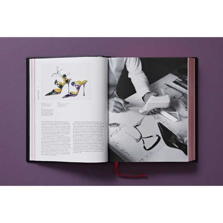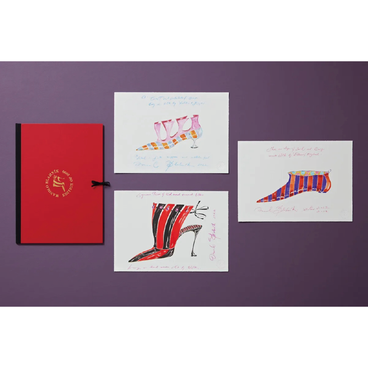 본 에디션 전용으로 홀마크 스탬프로 제작된 마놀로 블라닉(Manolo Blahnik)의 프린트 3종이 포함되어 있습니다. 6/8 컬러 도면은 파브리아노(Fabriano)가 100% 면지에 인쇄한 것으로, 금박 엠보싱과 리본 클로저가 있는 고급 포트폴리오에 담겨 있습니다.