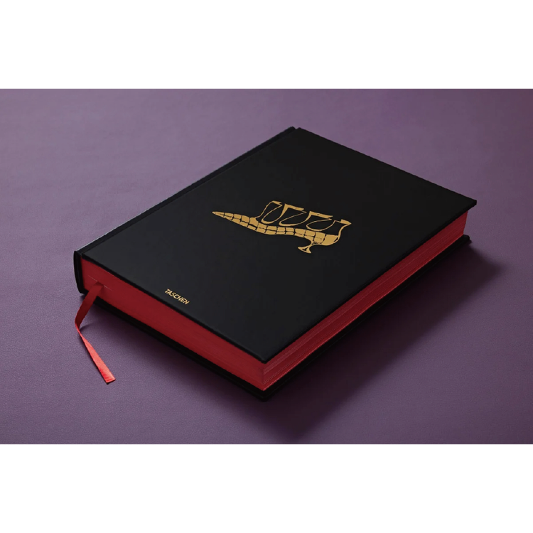 Edition of 1,000Hardcover in slipcase, both leather bound with gold foil embossing, red gilded edges, 26.2 x 33.6 cm (10.3 x 13.2 in.), 4,27 kg (9.40 lb), 532 pages, 3 art prints, 42 x 29.7 cm (16.5 x 11.7 in.) on 100% cotton paper, with hallmark stamp, in a portfolio with foil embossing and ribbon closure