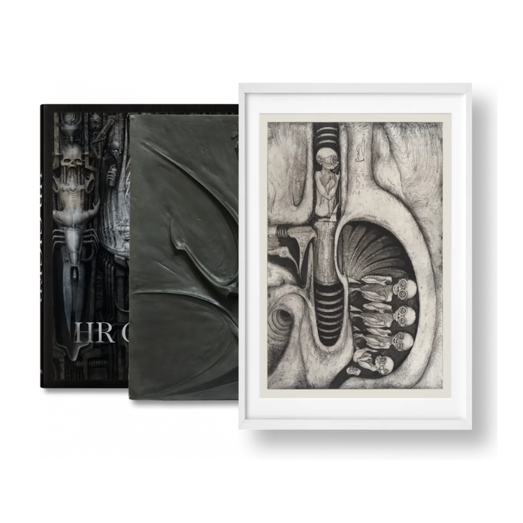 Art Edition (No. 1–100) each signed by Carmen Giger / HR Giger Estate. With the cast relief Untitled (1964), and photogravure Gebärmaschine (Second state) (1965/2016), both authenticated by Carmen Giger / HR Giger Estate.