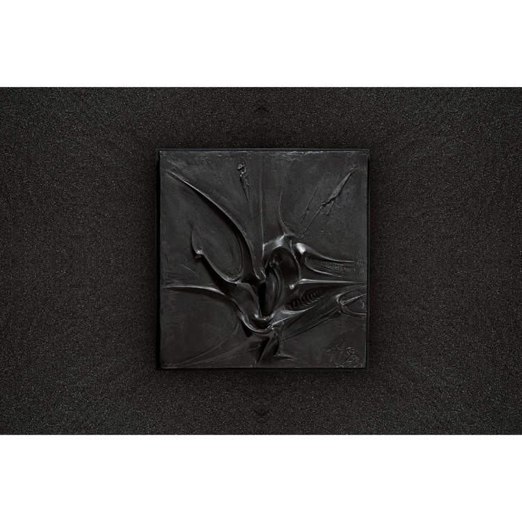 The accompanying ready-to-hang relief cast from an original polyester sculpture created by Giger in 1964. It combines two of the big interests of the artist’s early career: tachist painting (the European version of Abstract Expressionism, often characterized by calligraphic brushstrokes) and interior design. His abstract painting and design models in polyester come together in this fascinating piece, where skeletal forms already show promise of the gruesome creations of his later oeuvre.