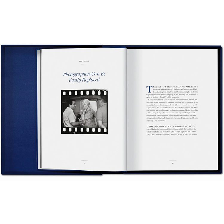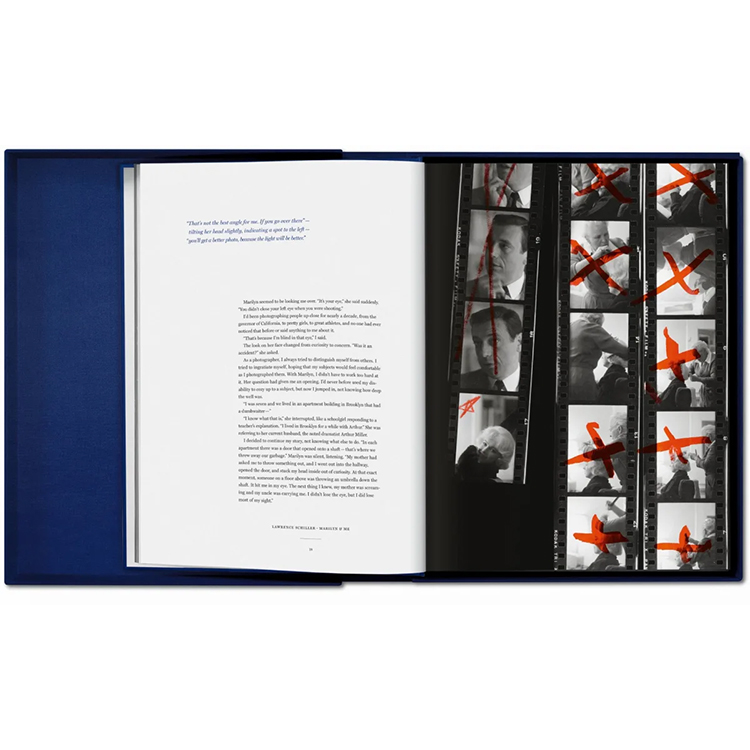 이번 책 Marilyn & Me는 나락으로 떨어지기 전의 전설적 스타와 정상을 향해 가고 있는 한 젊은 사진가와의 사사로운 이야기이다. 쉴러의 원본 글은 대부분 한 번도 혹은 거의 공개된 적이 없는 특별한 사진들과 함께 우리를 그 시절로 데려간다. 브루클린에서 온 야망은 크지만 경력은 거의 없는 한 젊은이와 먼로가 어떻게 친분을 갖게 되었는지를 보여준다. 50년이 지난 지금, 타셴은 로렌스 쉴러가 직접 쓴 이야기를 1,962판의 한정판으로 만들어 먼로에게 바치는 헌정서로 출간한다. 쉴러의 이야기는 그 동안 한 번도 공개된 적이 없었던 것이며, 그는 재치 있고 유머러스하면서도 따뜻한 마음을 갖고 자신의 이야기를 들려준다. 그 결과는 먼로가 한창 마지막 고난에 빠졌을 때를 보여주는 뜻밖의 하나의 사실적인 초상이자 기록물이라고 할 수 있다.