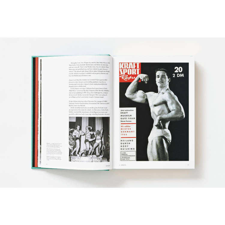 그 여정 속에서 아놀드의 근육질의 몸, 조각 같은 외모, 카리스마 넘치는 성격은 리처드 아베돈, 애니 리보비츠, 로버트 메이플소프, 허브 리츠, 프란체스코 스카불로, 앤디 워홀을 포함한 사진작가들에게 인기 있는 주제가 되었습니다. 이 대형 책에는 이들 사진작가의 작품이 모두 수록되어 있으며, 작은 동반 책에서는 아놀드의 더 친밀한 이미지와 아놀드, 이반 라이트만 감독, 밥 라펠슨 감독, 그리고 최고의 보디빌딩 전설들과의 독점 인터뷰를 제공합니다.