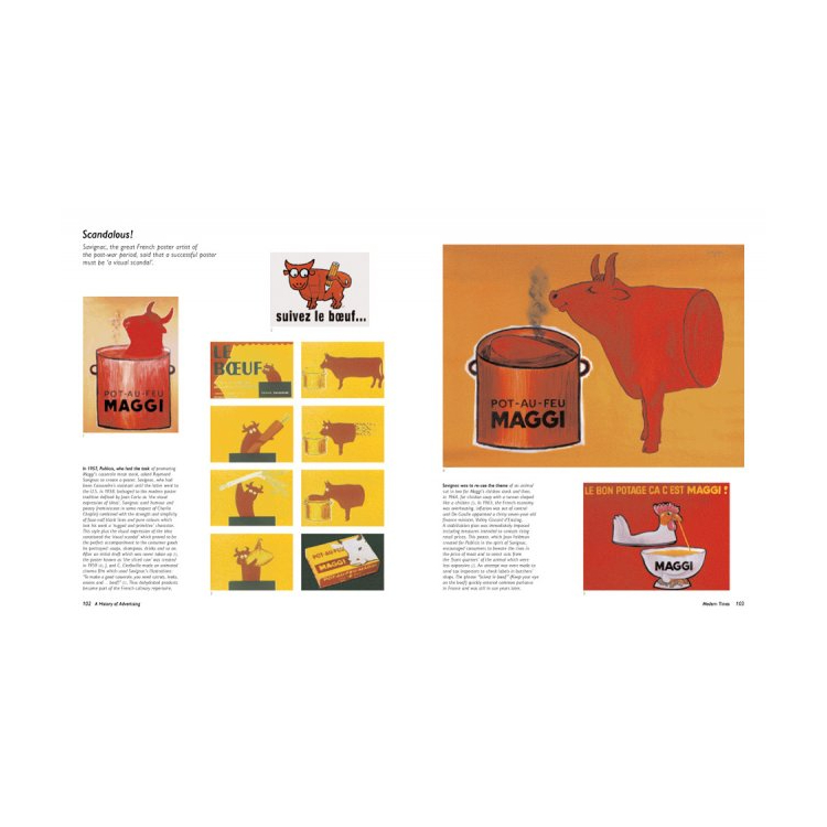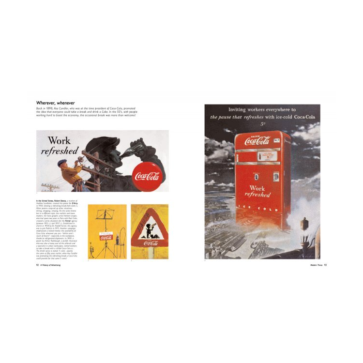 이 책에서는 10년을 단위로 하여 현대 광고 역사를 함께하는 전설적인 광고와 브랜드를 살펴보고, 특별한 일화와 광고 캠페인이 가진 각각의 중요성에 관하여 언급한다. 독자는 카멜 담배갑을 만들게 한 낙타의 사진과, 최초의 코카콜라 광고, 피카소와 마그리트 등과 같은 거장의 작품이 광고에 어떻게 사용되었는지를 보게 될 것이다.