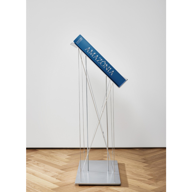 책의 서문에서 살가두는 이렇게 씁니다: “저에게 이것은 마지막 최전선이며, 그 자체로 신비로운 우주로, 자연의 막대한 힘이 지구 어느 곳에서도 느껴지지 않는 곳입니다. 여기는 무한히 뻗어 있는 숲으로, 모든 살아 있는 식물과 동물 종의 10분의 1이 존재하며, 세계에서 가장 큰 단일 자연 실험실입니다.” 이러한 자연과의 연결은 렌조 피아노(Renzo Piano)의 책받침 디자인에서도 느껴집니다. 그는 “책이 공중에 떠 있는 가장 간단한 방법이다. 책받침은 보이지 않고, 책만 공중에 단단히 고정되어 있다. 열린 페이지는 날고 있는 알바트로스처럼 보인다”고 말합니다. 이 연단은 순철로 제작되었으며, 파우더 코팅 처리와 조절 가능한 고무 발이 특징입니다. 이 디자인은 아마조니아 프로젝트를 위해 제작되었습니다.