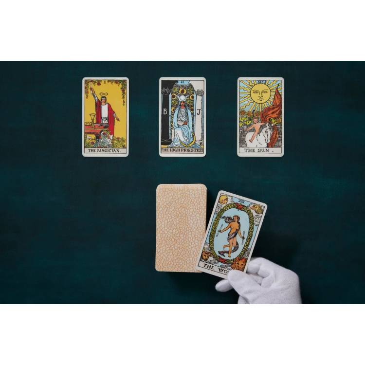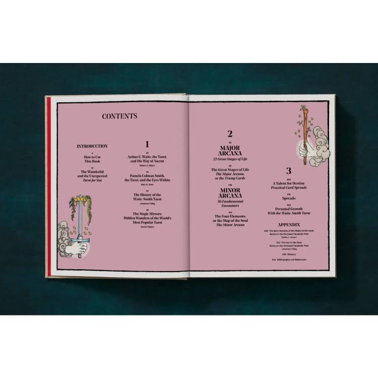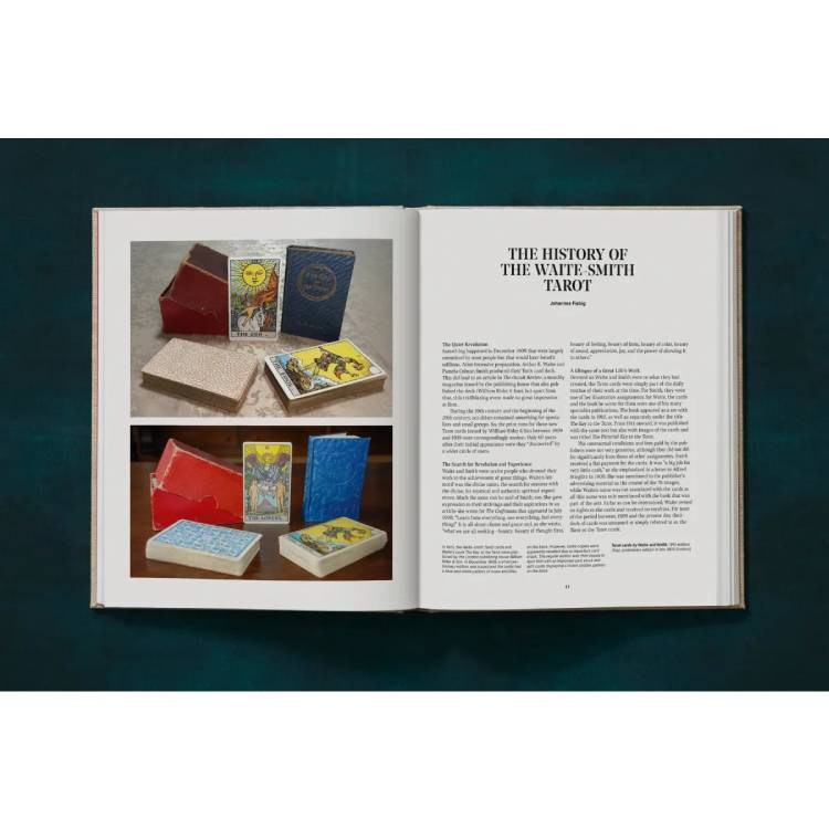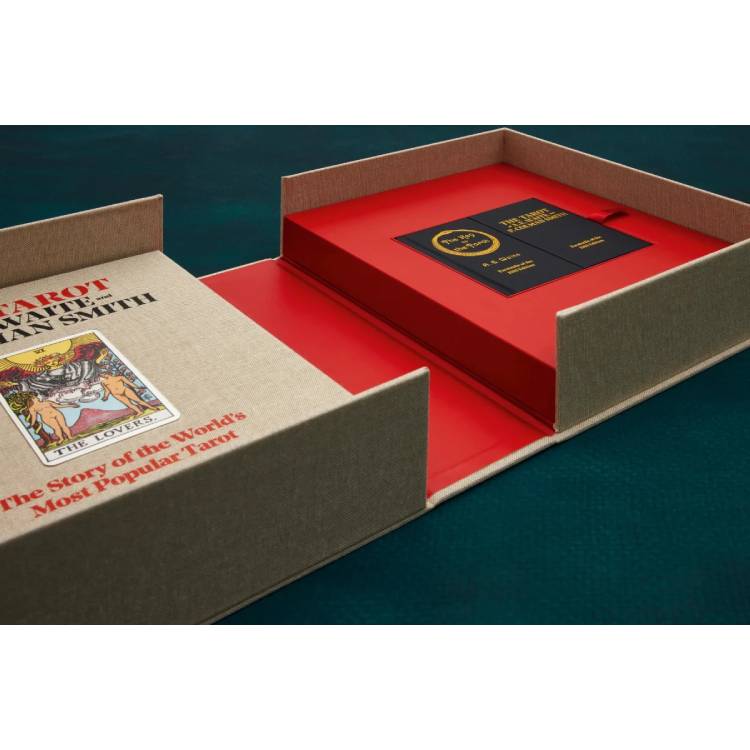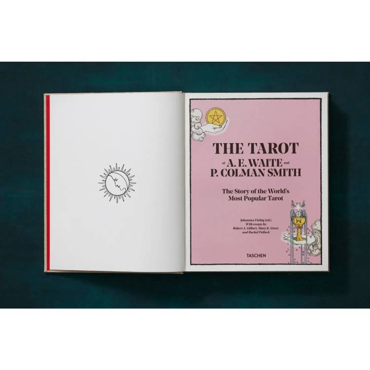 가치 있는 컬렉터 박스에는 웨이트-스미스 타로 카드의 완전한 덱과 웨이트의 유명한 동반서 *타로의 열쇠*가 포함되어 있습니다. 요하네스 피비히가 구성한 텍스트와 이미지를 담은 이 책에서는 타로 카드가 새로운 답변과 개인적인 해답을 제시하는 심리적 거울이자 이정표 역할을 합니다. 이러한 효과가 가능한 이유는 웨이트-스미스 카드가 가진 특정한 장점 덕분이며, 이는 레이첼 폴락의 에세이에서 설명됩니다.