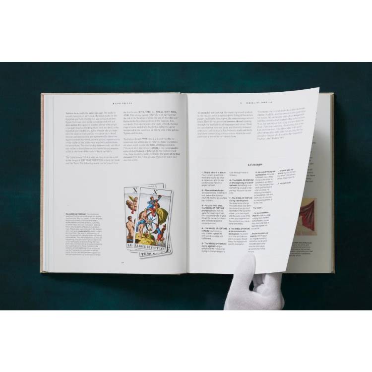 하드커버, 78장의 카드 덱 및 조개껍질 케이스에 담긴 사본, 23 x 28.7 cm, 3 kg, 444페이지
