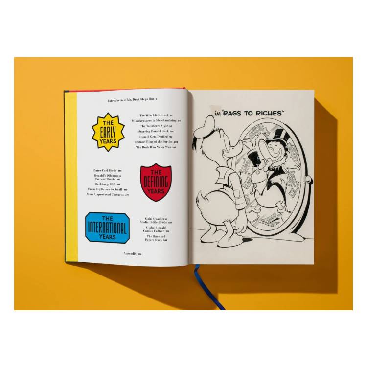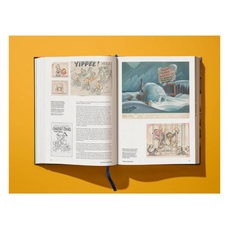 디즈니의 방대한 역사적 아카이브와 컬렉션, 그리고 공개 및 개인 컬렉션에 대한 전례 없는 접근을 통해, 저자들은 도널드 덕의 인생 이야기를 희귀한 컨셉 아트, 스토리 스케치, 배경화, 애니메이션, 만화 드로잉, 역사적인 사진들과 함께 조명합니다. 우리는 도널드 덕을 정의한 모든 주요 아티스트들의 작품을 만날 수 있으며, 그 중에서도 특히 "덕 맨"으로 불리는 이야기의 거장 칼 바크스의 대작을 포함하여, 보지 못한 초기 스토리보드 드로잉도 소개됩니다.