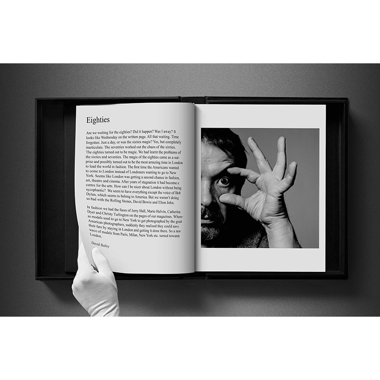 1981년 촬영된 Yves Saint Laurent의 서명된 프린트와 데이비드 베일리가 서명한 클램쉘 박스 속 책 Eighties 포함.