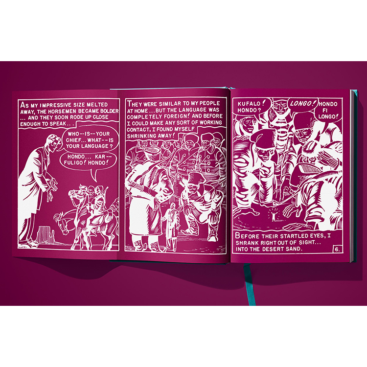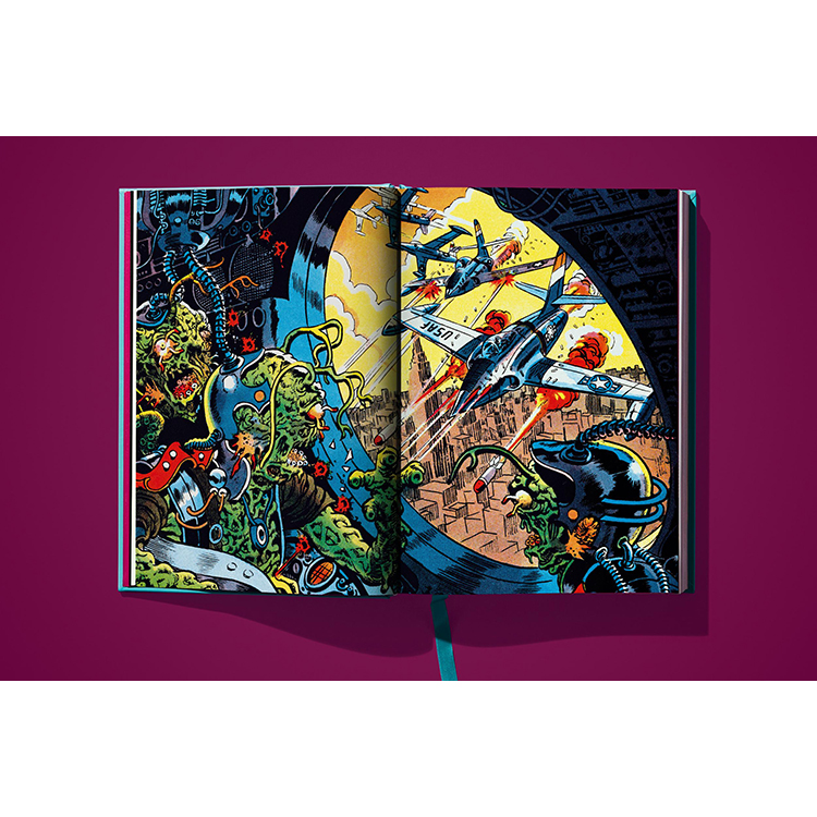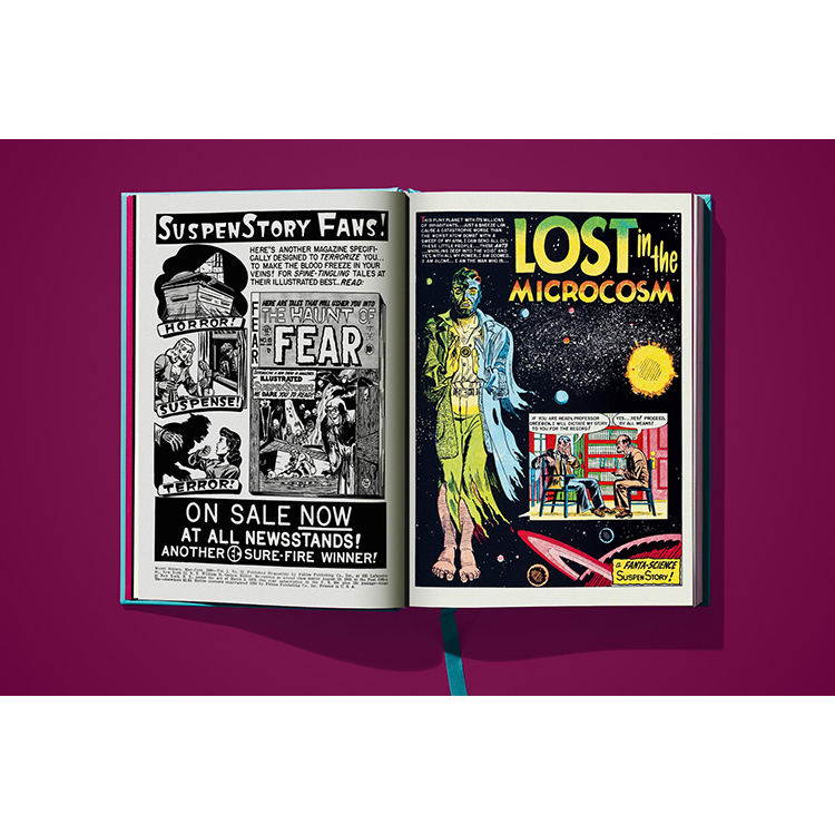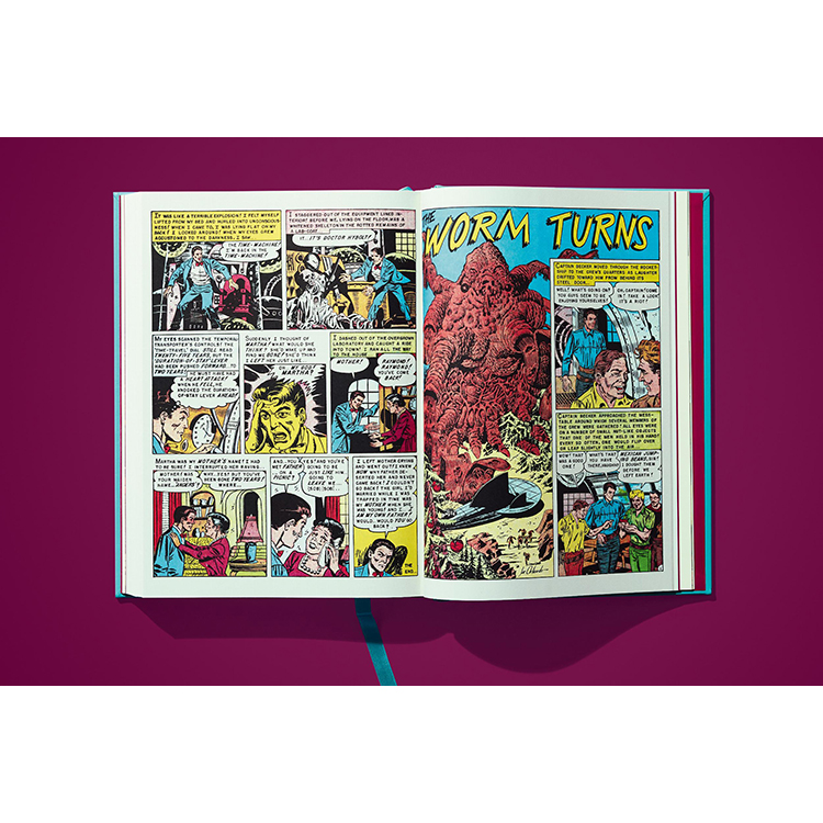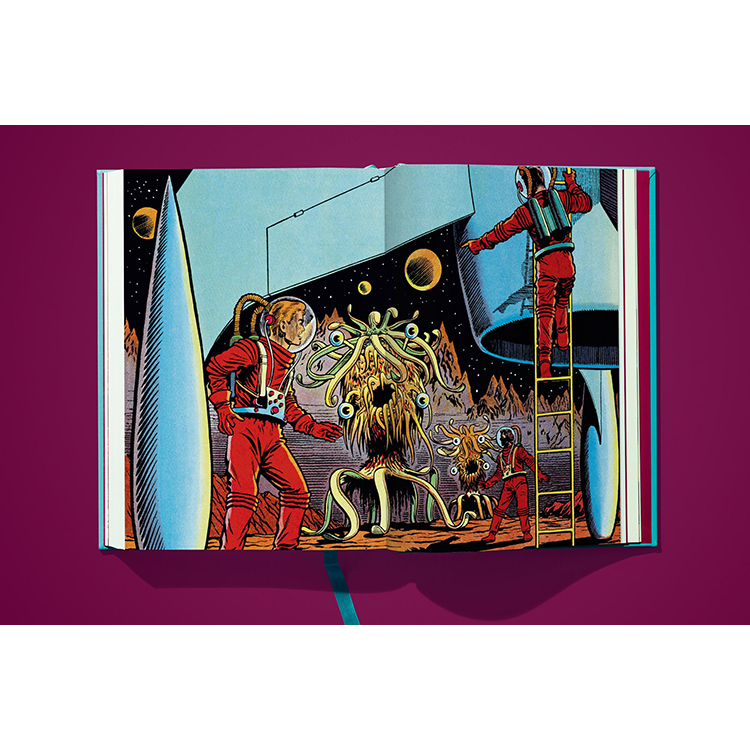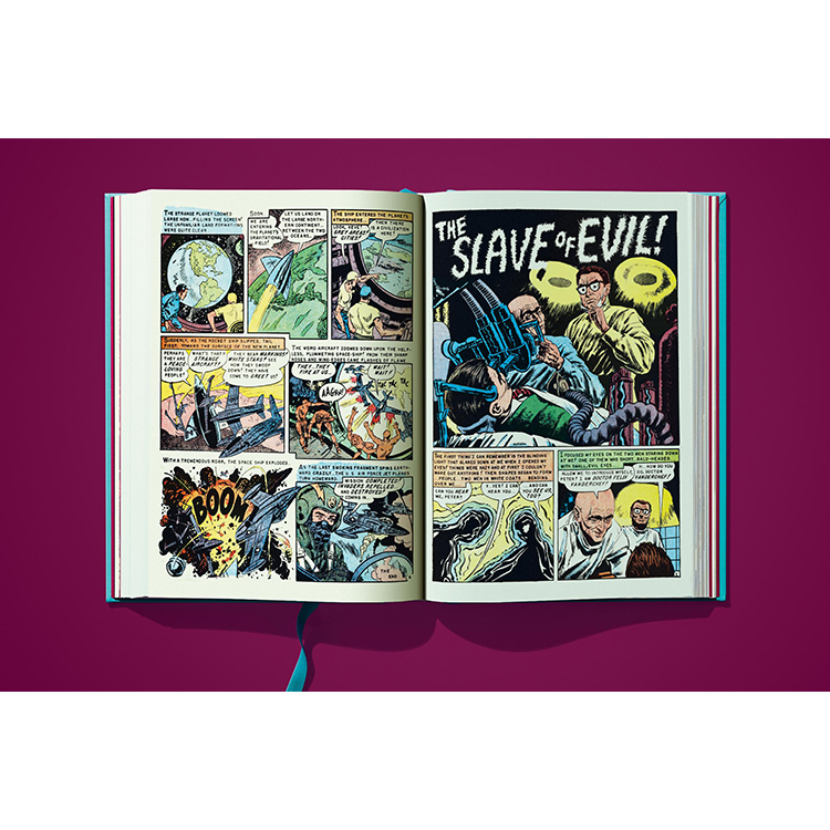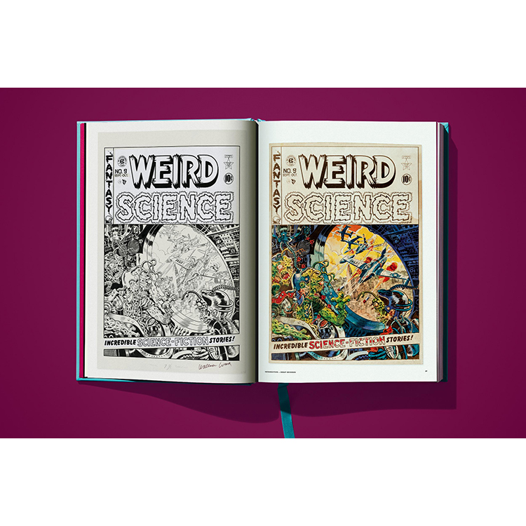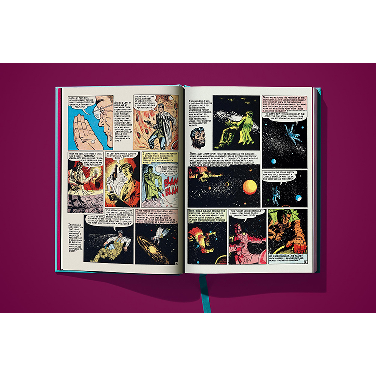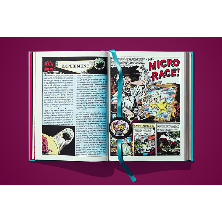 TASCHEN에서 선보이는 《위어드 사이언스》 Vol.1은 시리즈의 첫 11권을 오리지널 그대로 세밀하게 복원한 컬렉션입니다. 기존 작품의 색을 새롭게 입히는 대신, 50년이 넘은 페이지를 초고해상도로 촬영하고 현대적인 보정 기법을 사용하여 당시 저렴하고 불완전했던 인쇄 방식의 문제점을 수정했습니다. 그 결과, 고전 펄프 만화 특유의 분위기와 감성을 유지하면서도 최신 인쇄 기술로 새롭게 탄생한 완벽한 컬렉션이 완성되었습니다.