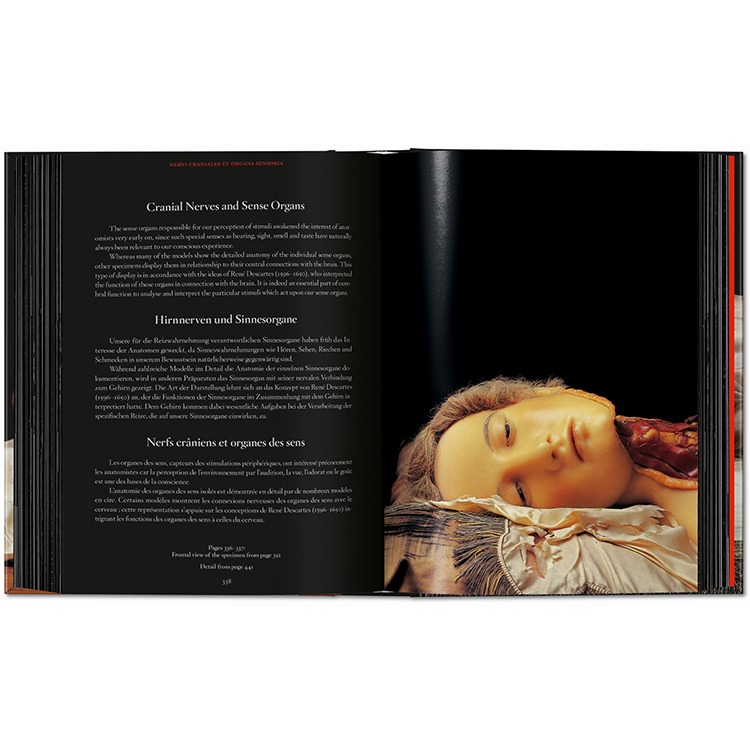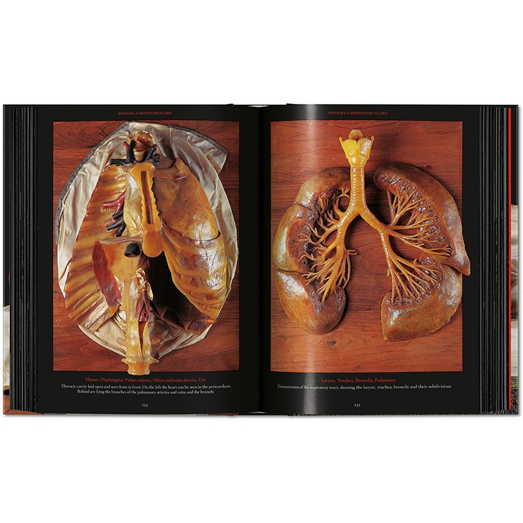 수집품과 박물관의 역사에 대한 확장된 에세이는 모델이 어떻게 의뢰되고 제작되었는지를 설명하며, 일부 모델은 참조를 위해 200구 이상의 시체가 필요하기도 했습니다. 각 장에는 일반인이 이해할 수 있는 해부학 설명 텍스트도 포함되어 있습니다.