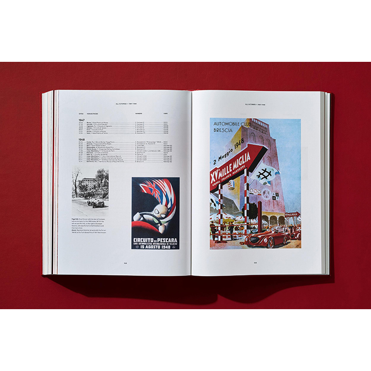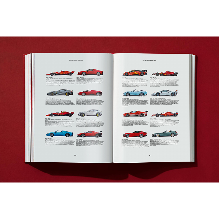 페라리 아카이브와 개인 소장가들로부터 전례 없는 사진과 문서들을 독점 제공받아 제작된 이 방대한 책은 페라리의 과거와 현재를 아우르는 주인공들과 승리의 서사시를 담고 있습니다. 저명한 스포츠 기자 겸 작가 피노 알리에비가 편집했으며, 1947년 이후 페라리의 모든 우승 기록을 완벽하게 정리한 부록도 수록되어 있습니다.