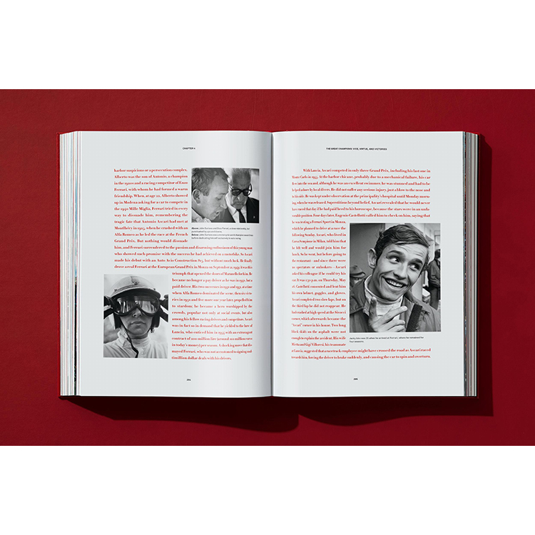 페라리와 긴밀히 협력해 기획된 이 세련된 에디션은 페라리 아카이브와 전 세계 개인 소장품에서 엄선한 독점 콘텐츠를 담았습니다. 아스카리, 판지오, 호손, 필 힐, 서티스, 라우다, 스체크터, 슈마허 같은 전설적 페라리 드라이버들의 숨겨진 이야기와 승리의 뒷면을 보여주는 미공개 사진, 스케치, 원본 문서들을 한데 모았습니다. 또한 1947년 이후 모든 페라리 승리를 한눈에 볼 수 있는 완전하고도 전례 없는 부록도 포함되어 있습니다.