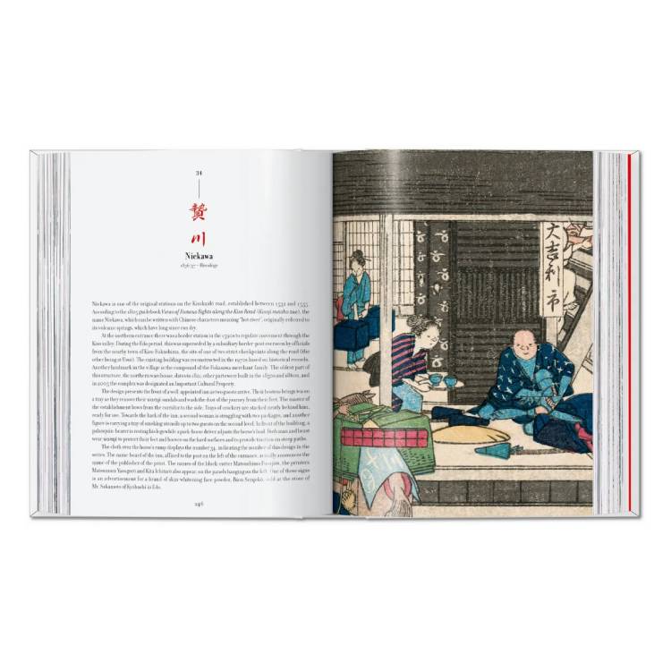 이 에디션은 케이사이 아이센과 우타가와 히로시게의 전설적인 시리즈 《기소카이도 69역》(The Sixty-Nine Stations along the Kisokaidō)을 재인쇄한 작품으로, 에도와 교토를 잇는 역사적 경로를 아름답게 표현한 것입니다. 19세기 일본을 생생하게 그려낸 이 작품은 제국의 과거를 대표하는 중요한 유물이자 목판화 기법의 걸작입니다.