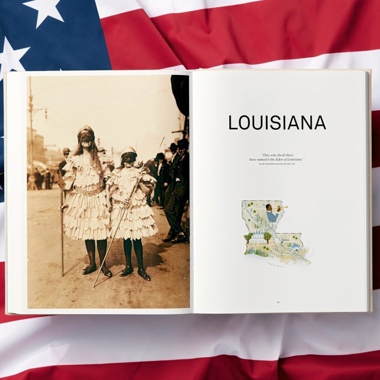 웅대한 자연 풍광에서부터 발전하는 산업, 향수를 자극하는 농촌 생활부터 빠르게 성장하는 도시 모습까지—주별로 소개되는 특별한 사진들은 거대하고 역동적이며 다채로운 나라의 생생한 기록을 보여줍니다. 콜로라도의 스키 슬로프에서 뉴올리언스의 재즈 바, 할리우드 힐스의 화려함에서 켄터키 이발소, 맨해튼 차이나타운에서 미시시피 강의 세례 장면까지—사진 속 장면을 따라 미국 곳곳으로 여행하게 됩니다. 여정 속에서 사진 기술의 발전 또한 확인할 수 있습니다. 1920–30년대의 초기 흑백 및 오토크롬 이미지에서, 중세기의 코닥크롬, 1970–80년대의 보다 강렬한 보도사진, 그리고 1990년대부터 현재까지 디지털 이미지의 시대에 이르기까지.