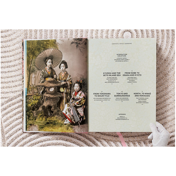 536쪽 분량의 이 책은 일본의 빈티지 이미지 700여 장을 소개하고 있으며, 일본 초기 사진 전문가에 의한 텍스트, 그리고 차, 비단, 불교 등 다양한 전통을 탐구하는 주제 섹션을 통한 광범위한 해설과 5개 지역에 걸친 여행, 이 모든 것이 독자들을 매혹적인 땅으로 안내한다.