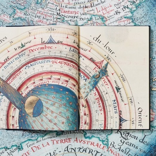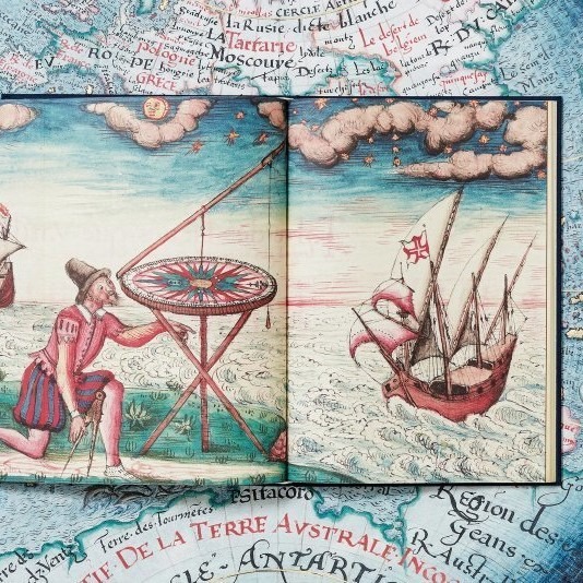 이 화려하게 주석되고 장식된 폴리오들은 선원들을 위한 백과사전적 참고서이자 왕실 후원자를 위한 장엄한 해양 걸작으로, 아스트롤라베, 대서양 해도, 일조(주야) 조석 표, 점성 차트, 태양 고도 측정 등 다양한 해군 및 우주론적 도구와 기법의 집대성이라 할 수 있다. 또한 오늘날 종이 기반 아날로그 컴퓨터의 초기 사례로 여겨지는, 회전 구조로 이루어진 원형 차트 ‘볼벨(volvelle)’도 함께 수록되어 있다. 이 폴리오들은 항해의 한계를 넓혀가던 시대의 지식 수준을 응축하며, 르네상스 시대 항해가 요구했던 실질적인 일상 조건을 생생하게 보여준다.