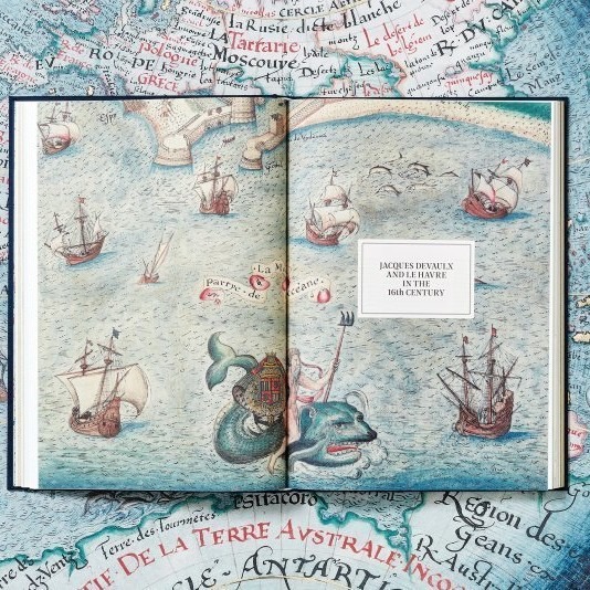 프랑스의 역사적인 항구 도시 르아브르가 건설된 지 500년을 맞아, TASCHEN은 1583년 르아브르 출신의 ‘국왕 해군 항해사(Naval Pilot to the King)’ 자크 드보가 처음 출판한 『자크 드보의 초기 작품들, 해군 항해사(Les premières œuvres de Jacques Devaulx, pilote en la marine)』의 파시밀리(원본 충실 복제) 에디션을 선보인다. 조아외즈 공작에게 헌정된 이 특별한 채색 필사본은 항해·천문·지도 제작에 관한 지식은 물론, 항해사이자 수로학자, 우주론자, 지도 제작자로서 드보가 남긴 방대한 주석과 관찰, 기록을 함께 담고 있다.