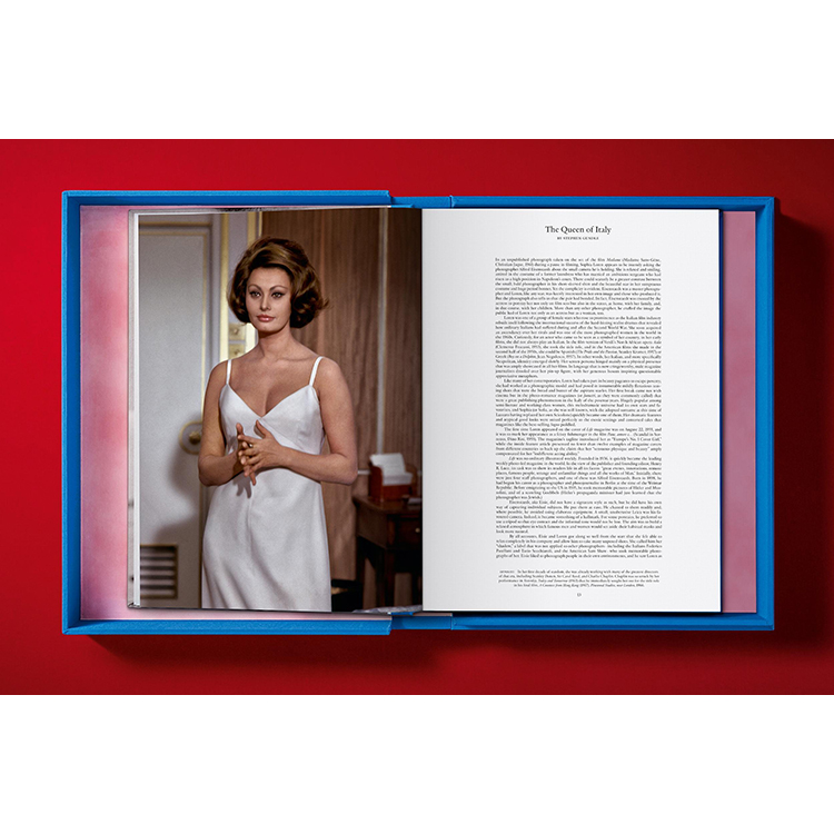 이탈리아 문화 평론가 스티븐 건들(Stephen Gundle) 교수의 에세이와 할리우드 역사가 저스틴 험프리스(Justin Humphreys)의 캡션이 함께하는 이 매혹적인 쇼케이스는 로렌의 다채로운 면모—뮤즈, 아이콘, 어머니, 영원한 스타, 그리고 평범한 여성—를 보여줍니다. 무엇보다 이 책은 포토저널리즘을 재창조한 아이젠슈테트와 이탈리아 글래머의 전형인 로렌, 두 전설 사이에 지울 수 없는 독특한 우정을 담은 사진 앨범입니다.