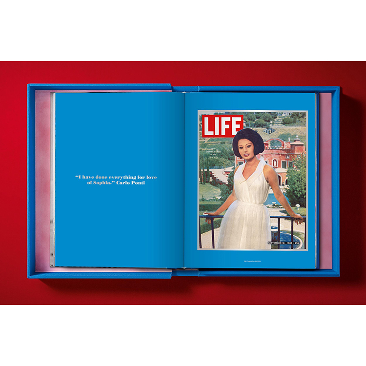 《Sophia》는 1960~70년대에 촬영된 약 200점에 가까운 미공개 컬러 및 흑백 사진들을 담고 있으며, 《LIFE》 매거진 아카이브 깊숙이 보관되어 있던 원본 네거티브를 뉴욕에서 새롭게 스캔한 작품들입니다. 이 사진들은 로렌 본인과 아이젠슈테트 유족의 전폭적인 승인을 받아 전례 없는 협업으로 엄선·편집되었습니다. 솔직하고 생생한 비하인드 사진들과 함께, 아이젠슈테트가 로렌을 주인공으로 촬영한 수많은 《LIFE》 표지 스토리의 원본 인쇄 페이지(tear sheets)도 수록되어 있습니다. 로렌은 자연스럽게 아름답고 생기 넘치며 대담하지만, 동시에 사적인 세계에서는 깊이 사색적인 모습을 보입니다. 아이젠슈테트는 그 세계를 목격할 특권을 가진 유일한 사람이었습니다. 우리는 그녀가 《Madame》(1961), 《이탈리아식 결혼》(1964), 《홍콩에서 온 백작부인》(1967) 등의 영화 세트장에서 마르첼로 마스트로야니, 말론 브란도, 찰리 채플린 같은 전설들과 함께하는 모습, 나폴리 근처 소박한 가족 집, 로마 근교의 장엄한 빌라에서 남편 카를로 폰티(Carlo Ponti)와의 친밀한 순간들, 1969년 어머니가 되는 순간, 1976년 파리에서 아들 카를로 주니어와 에도아르도와 함께하는 가족 생활, 그리고 1979년 뉴욕에서 자전적 회고록 홍보 투어 중 더 성숙하고 당당해진 작가로서의 그녀를 만납니다. 아이젠슈테트는 그의 트레이드마크인 예술성과 인간미가 어우러진 방식으로 이 모든 것을 완벽하게 포착했으며, 그의 사진들은 그녀의 놀라운 경력과 삶에서 가장 역동적인 시기를 이야기합니다.