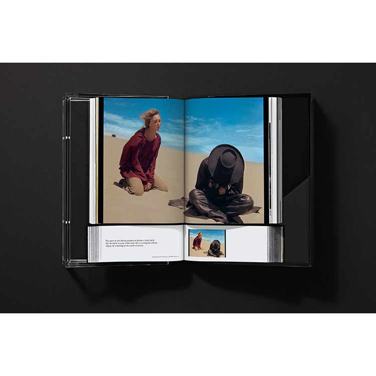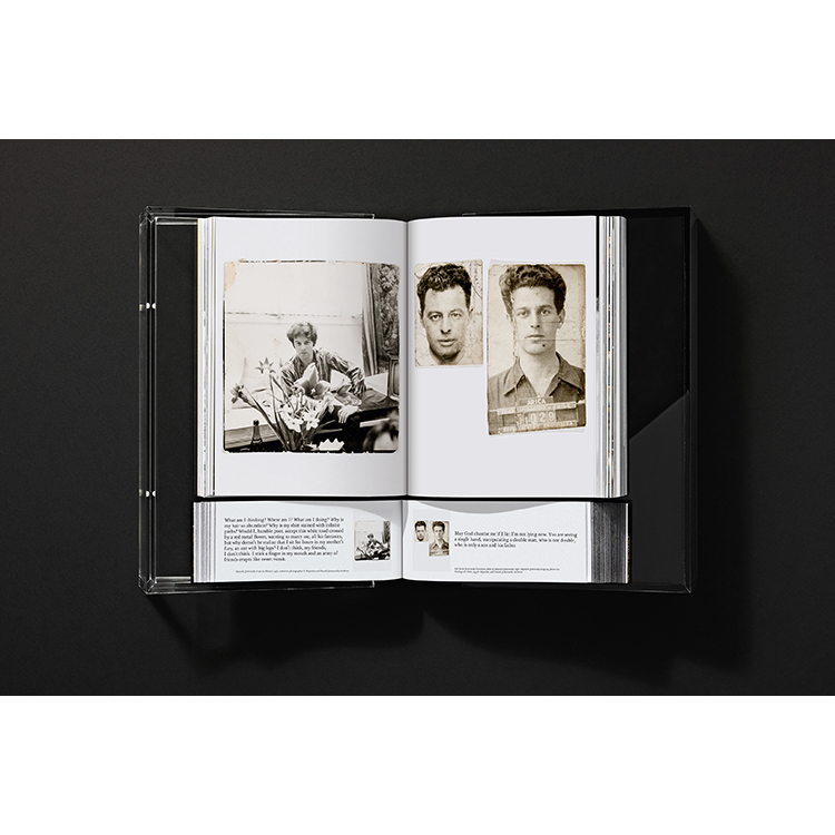 Edition of 800Two volumes in a in a custom-designed Plexiglas box that can be used as a book stand, 25 x 42 x 9 cm; volume 1: Softcover with fold-outs, 22 x 29.5 cm, 1.096 pages, gilded edges on top and bottom, signing page at location selected by chance; volume 2: hardcover with black gilded edges, 22 x 8.5 cm, 1.072 pages, total weight 14 kg