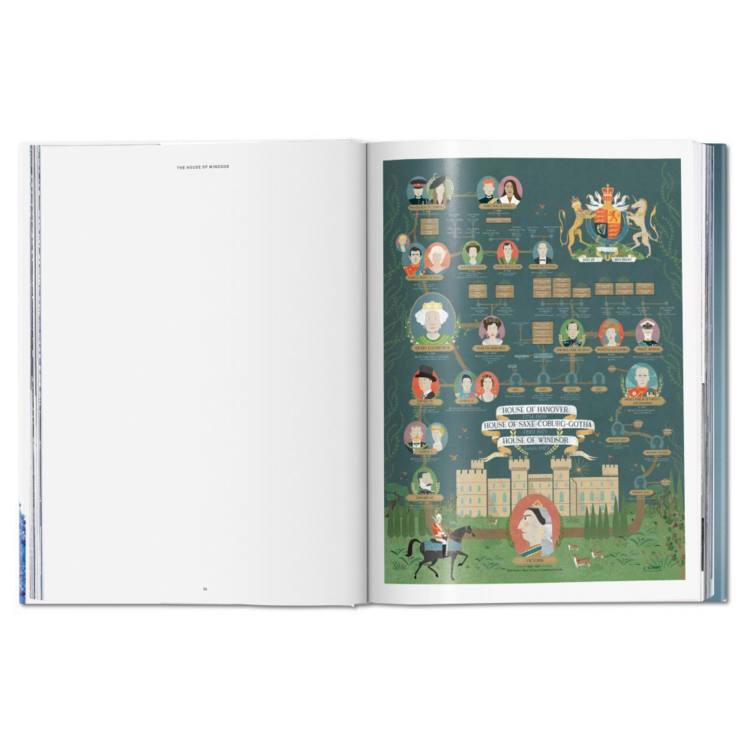 역사, 전통, 화려함, 그리고 문화로 가득 찬 이 책은 여왕의 어린 시절부터 가장 최근의 국빈 방문과 의식까지 다룹니다. 그 과정에서 우리는 제2차 세계 대전 중 그녀의 성년기, 결혼, 모성애, 대관식, 비틀즈, 마릴린 먼로, JFK와 같은 또래의 아이콘들과의 만남, 그리고 그녀의 광범위한 해외 여행을 추적합니다. 우리는 화려한 왕궁들을 방문하고 왕실의 결혼식과 기쁨의 전염성 있는 축하를 즐깁니다. 우리는 공식적인 초상화의 우아함과 비공식적이고 가족적인 순간들의 부드러움과 유머를 목격합니다.
